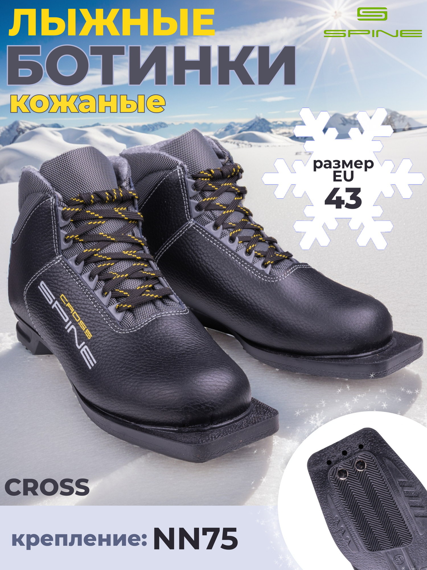 Ботинки лыжные Spine CROSS 75 мм (кожа), размер 45