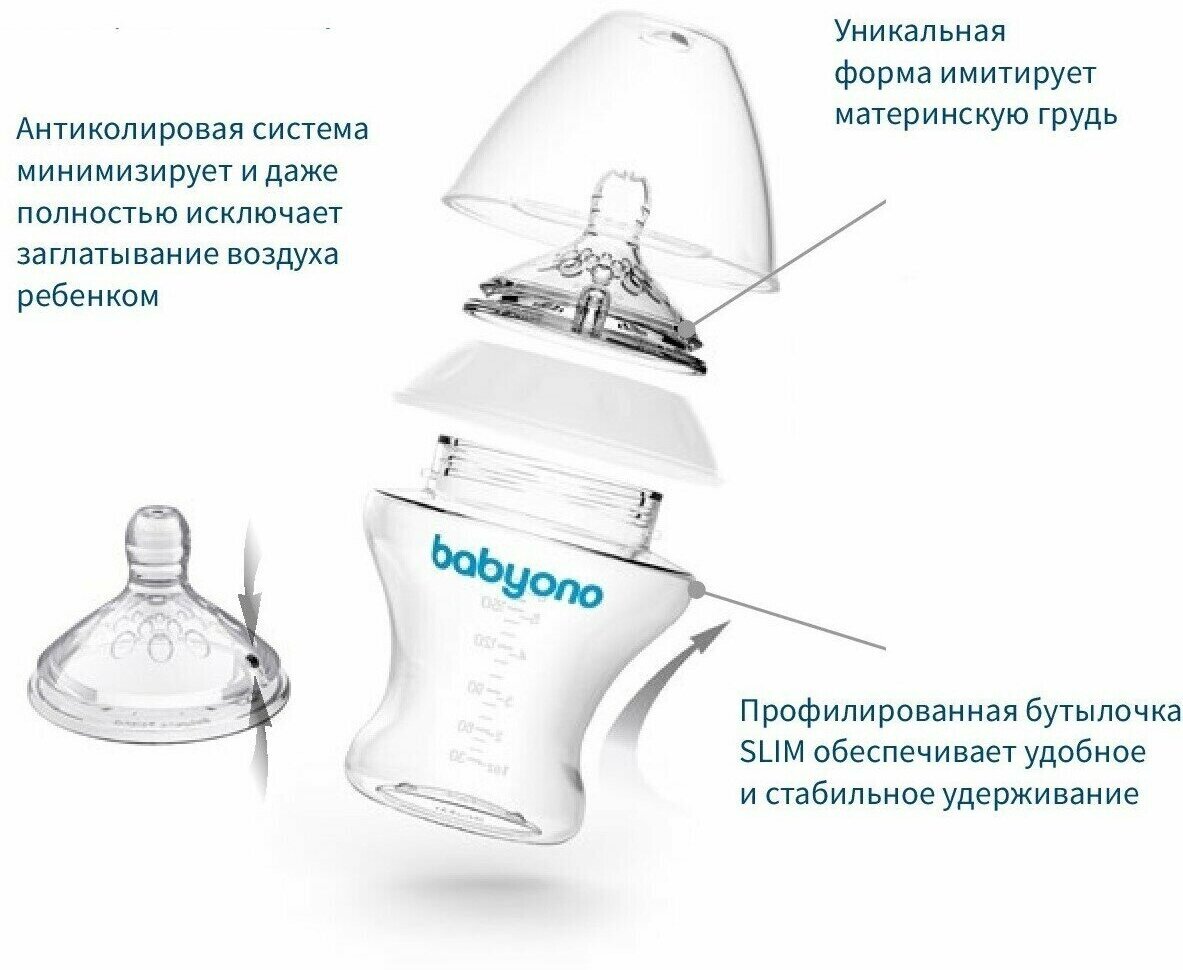 BabyOno Детская бутылочка для кормления антиколиковая, 180 мл