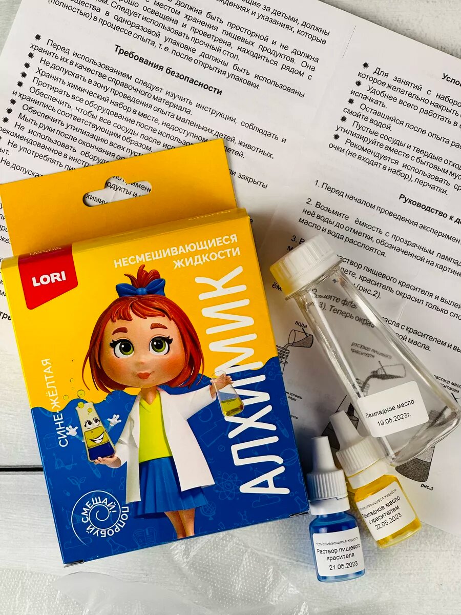 10 цен на Химические опыты Несмешивающиеся среды Синяя Желтая Лори