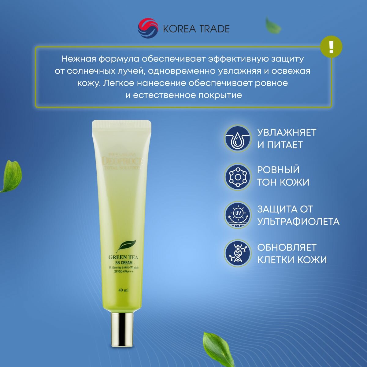 DEOPROCE PREMIUM GREENTEA TOTAL SOLUTION BB CREAM SPF50+PA+++ Солнцезащитный BB крем с экстрактом зелёного чая информация: