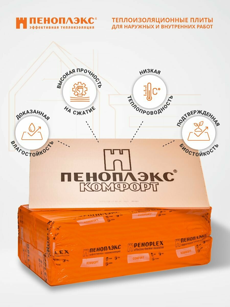 Утеплитель Пеноплекс 40 мм Комфорт 2 плиты 1,4м2 из пенополистирола для стен, крыши, пола информация: