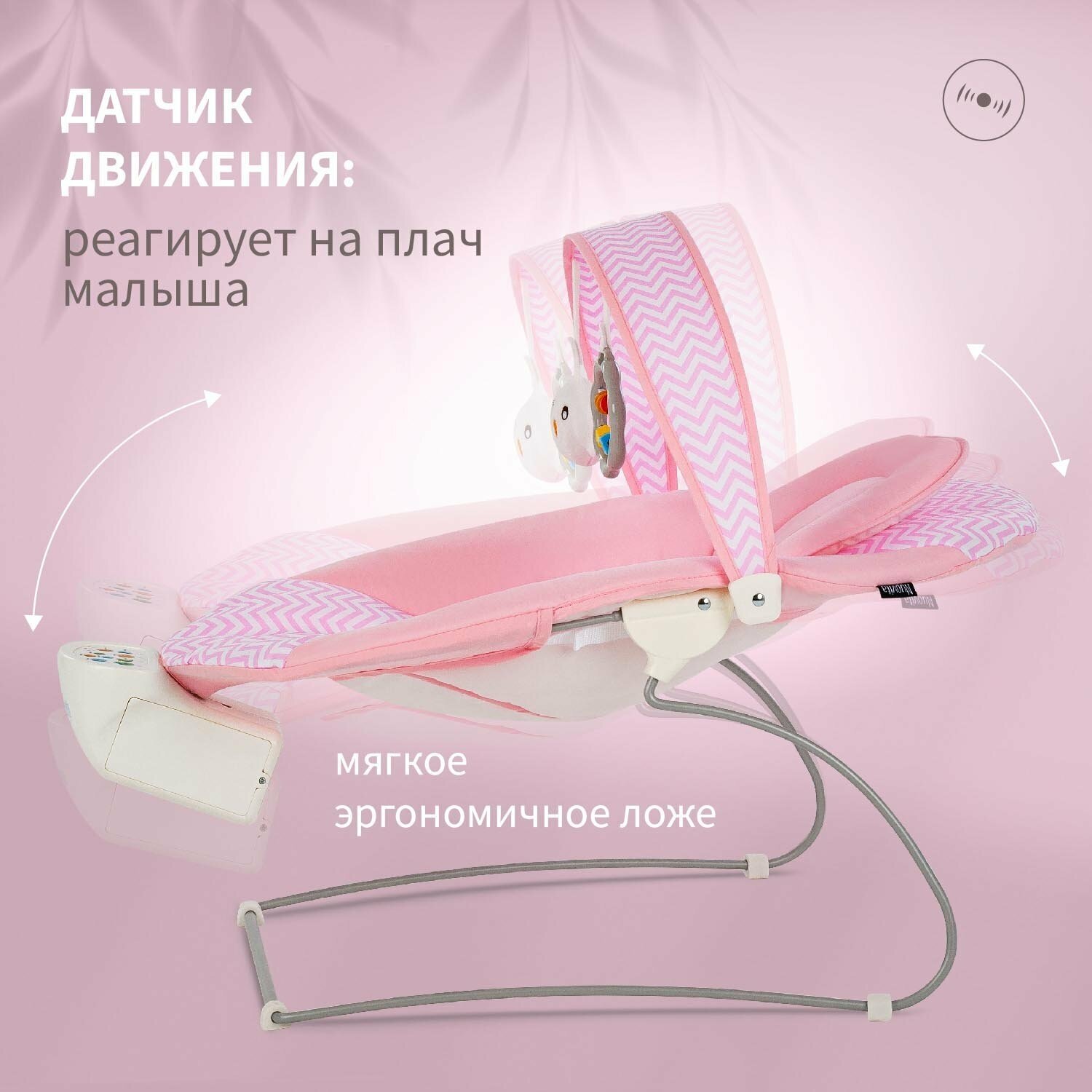 Шезлонг качалка для новорожденного музыкальный 6917 серо-розовый