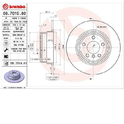 Диск тормозной 08.7019.81 brembo 1шт информация: