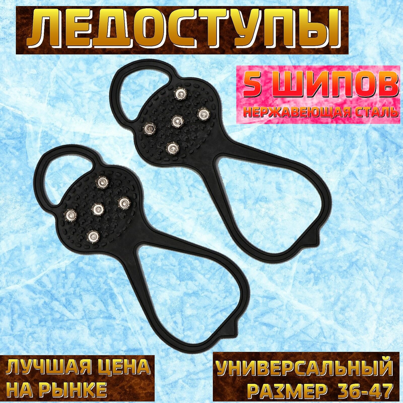 10 цен на Ледоступы ледоходы, 5 шипов, размер 36-47, пара