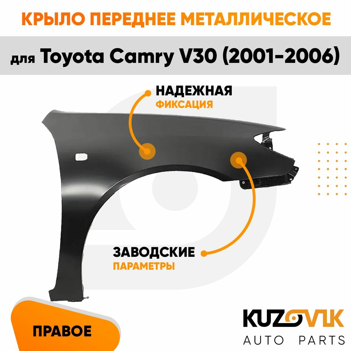 10 цен на Крыло переднее правое для Тойота Камри В30 Toyota Camry V30 (2001-2006) металлическое с отверстием под повторитель, новое заводское качество под покраску