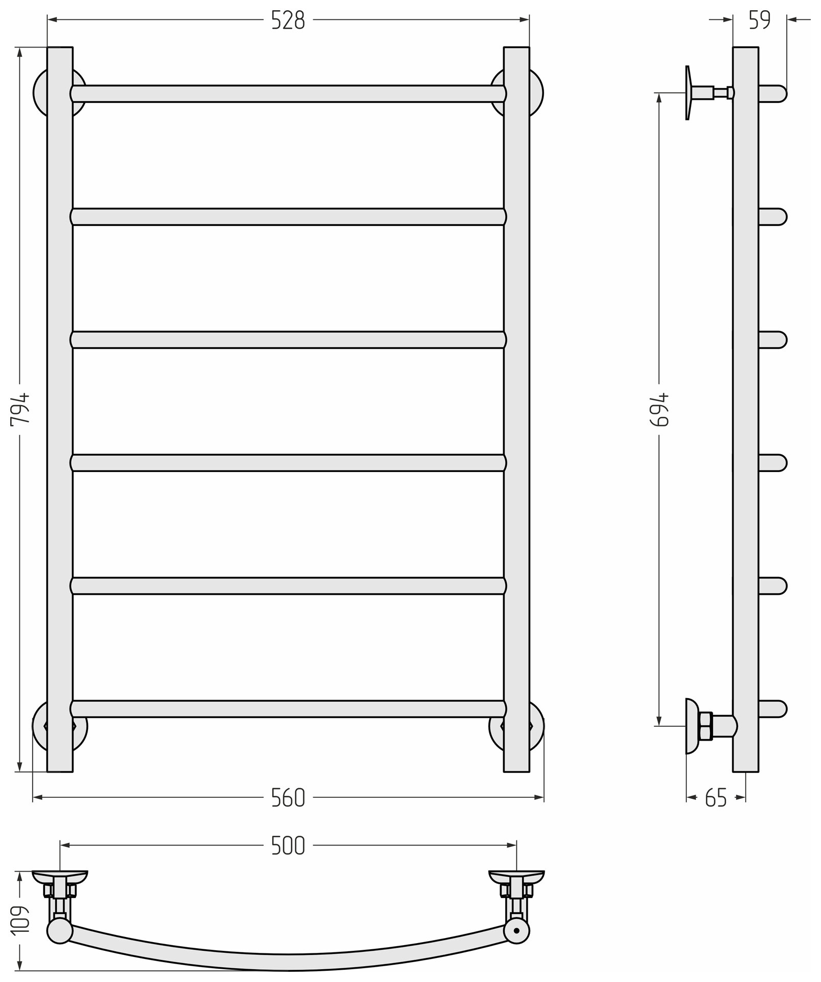 TERMINUS Полотенцесушитель электрический Terminus Хендрикс П6 500x596, ТЭН HT-1 300W, левый/правый