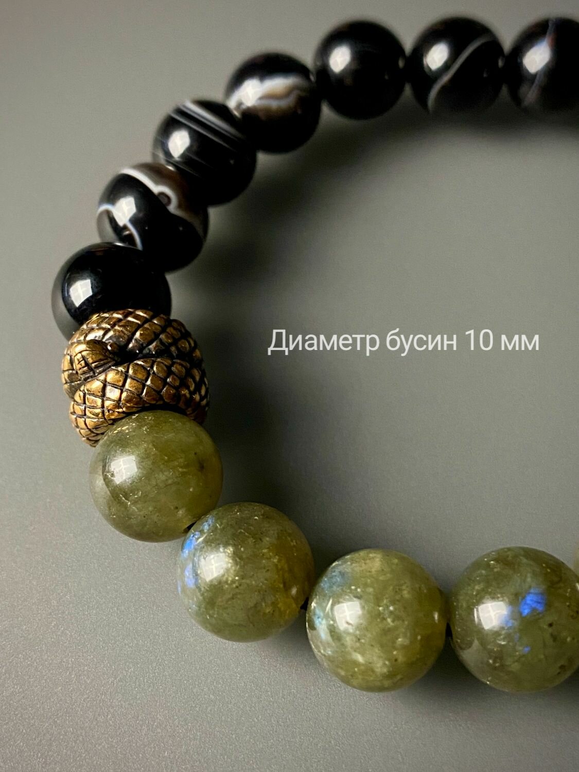 Браслет из натуральных камней лабрадор, агат, бронзовая бусина змея плетеный шамбала / идеи подарка девушке пожруге -16-18см 2 300 ₽