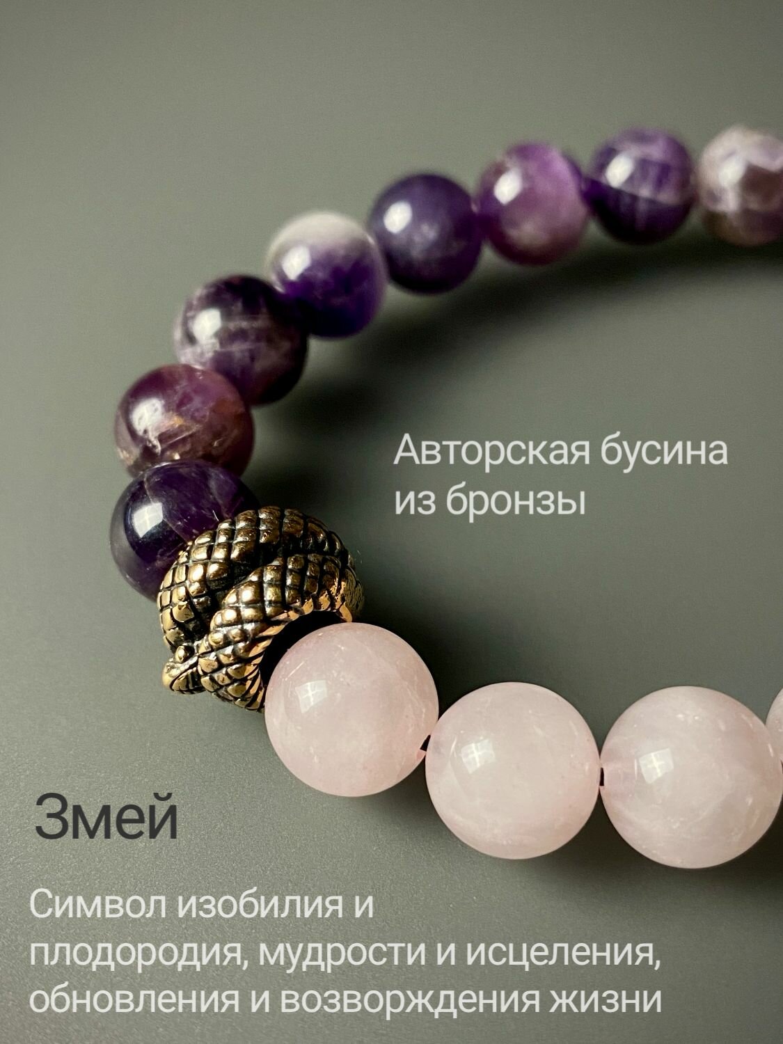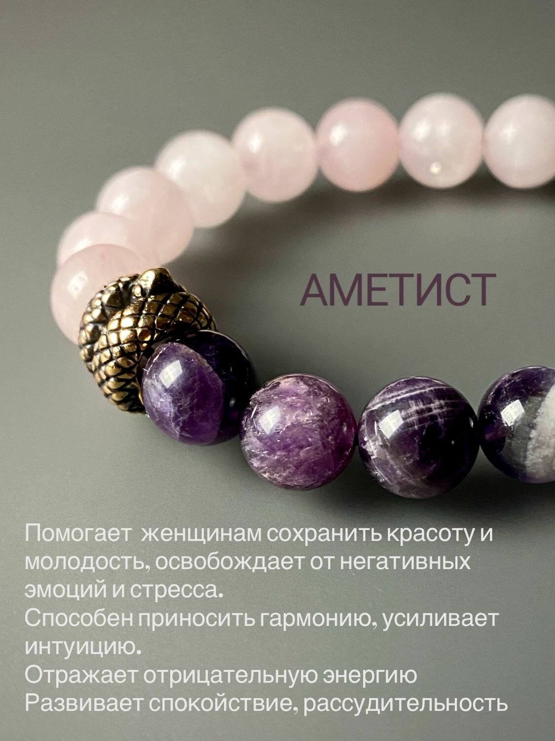 Отзывы на Браслет змея из натуральных камней аметист и кварц, в подарок подруге