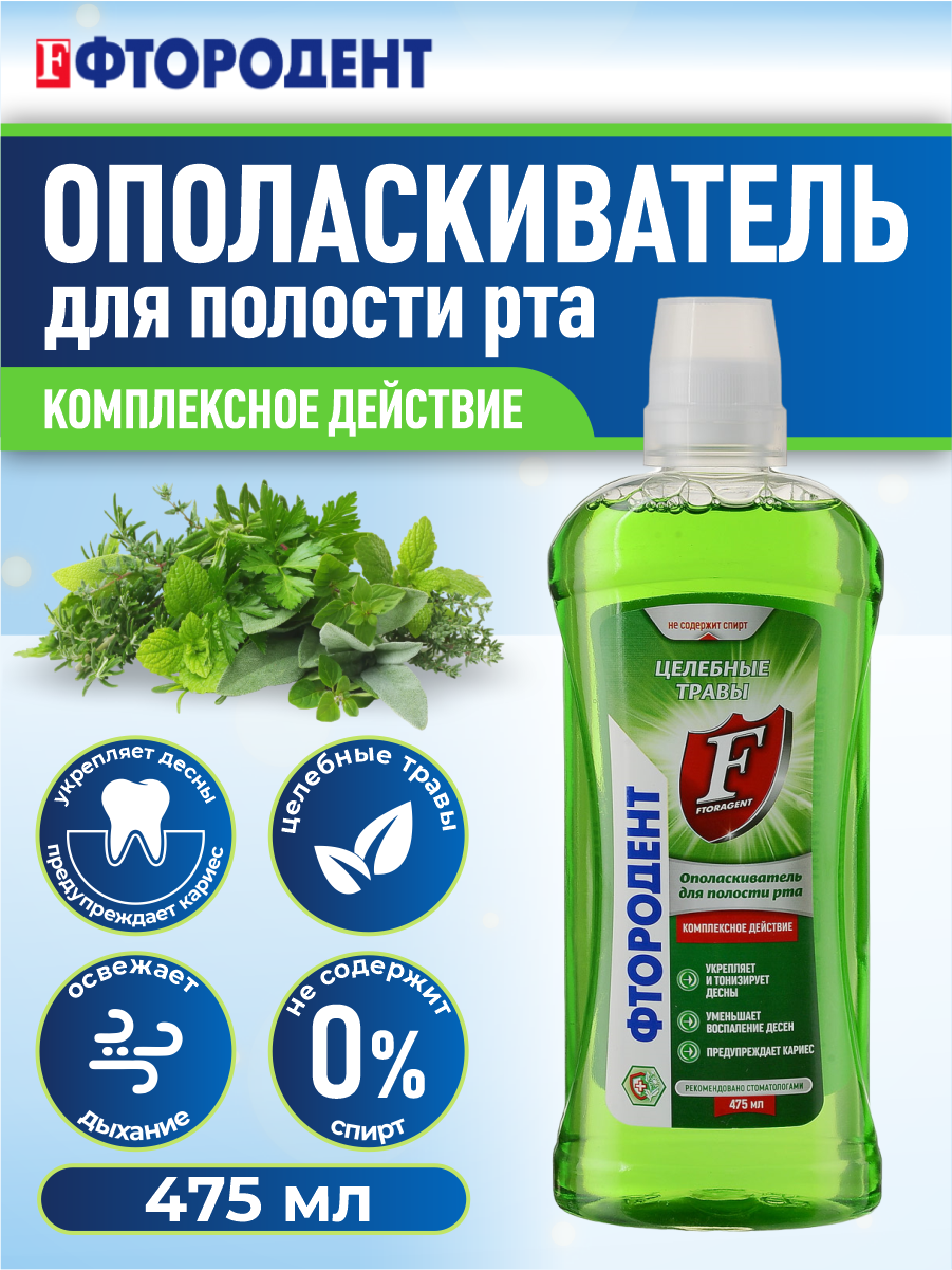 Ополаскиватель для полости рта Фтородент Целебные травы 475 мл информация: