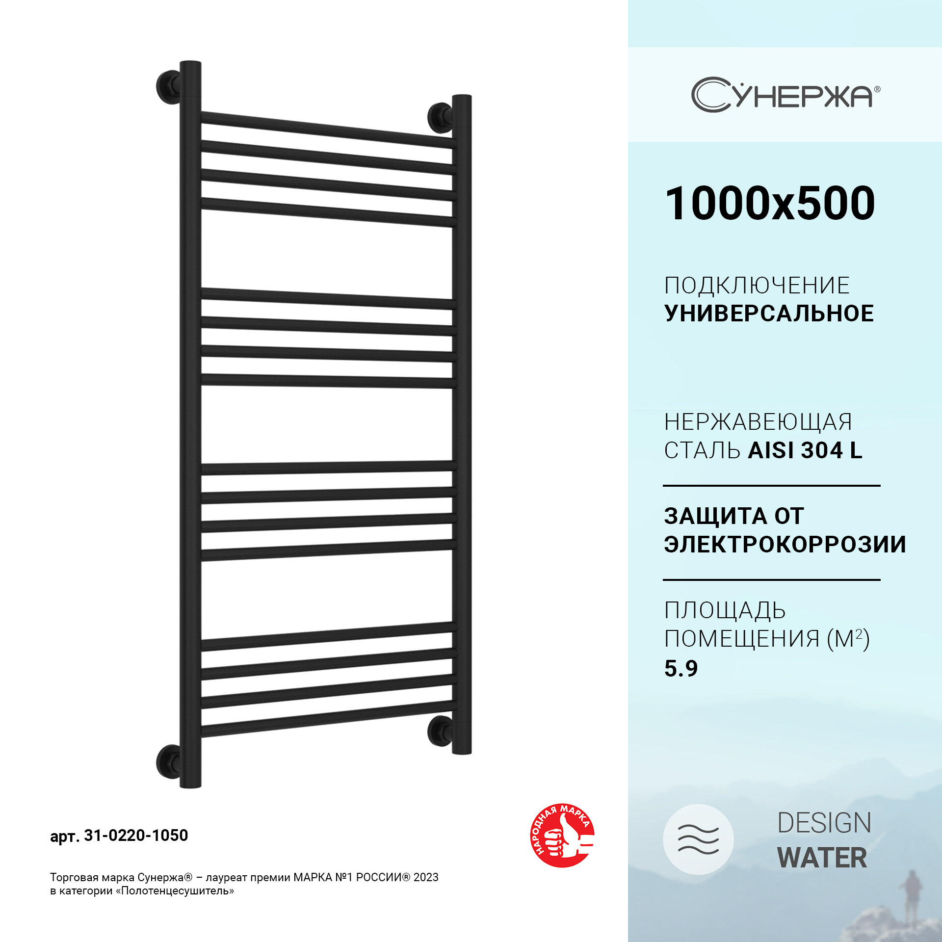 Полотенцесушитель водяной Сунержа Богема+ прямая 1000х500 Матовый черный 31-0220-1050 информация: