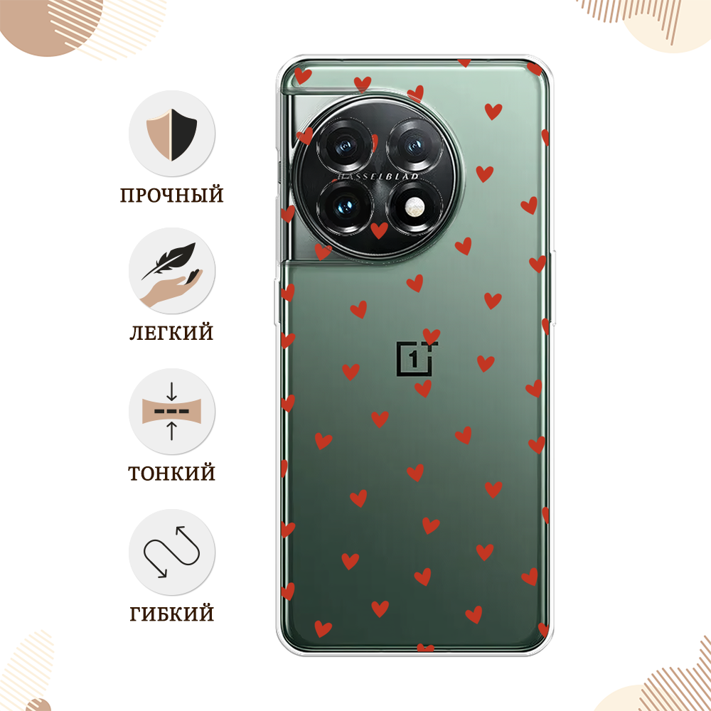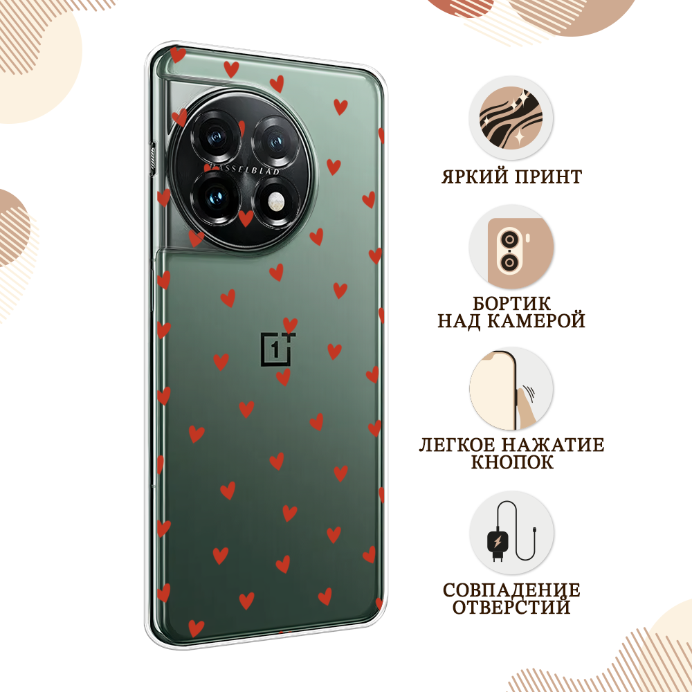Чехол на OnePlus 11 / Ван Плас 11 с принтом Red hearts, прозрачный информация: