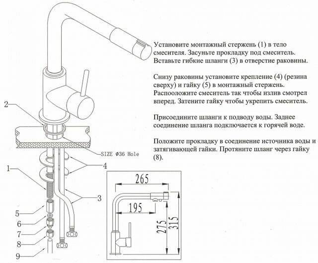 | Высота излива | 275 мм / 315 мм |