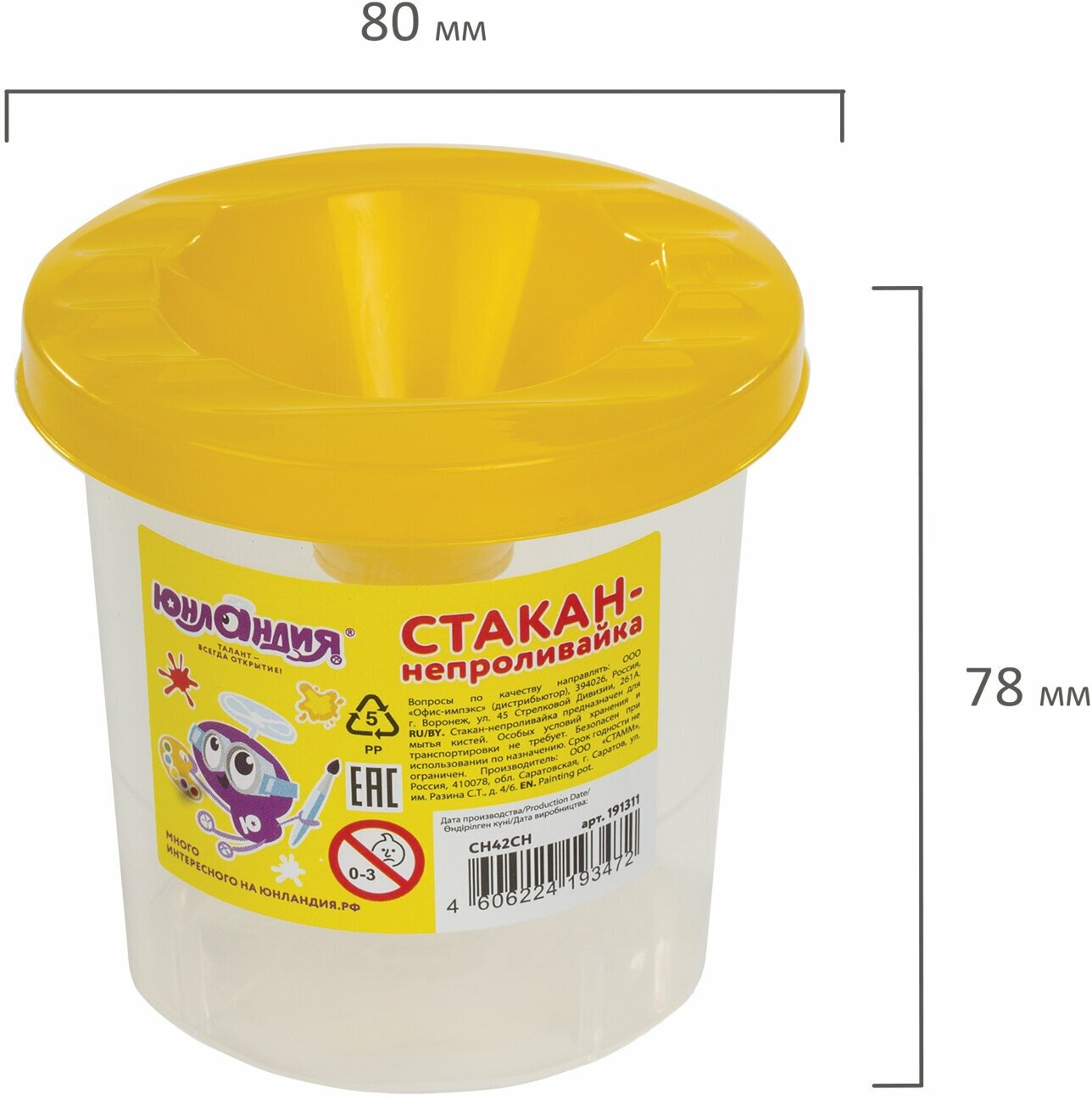 Упаковка 50 шт. Стакан-непроливайка юнландия, желтая крышка, 191311 информация: