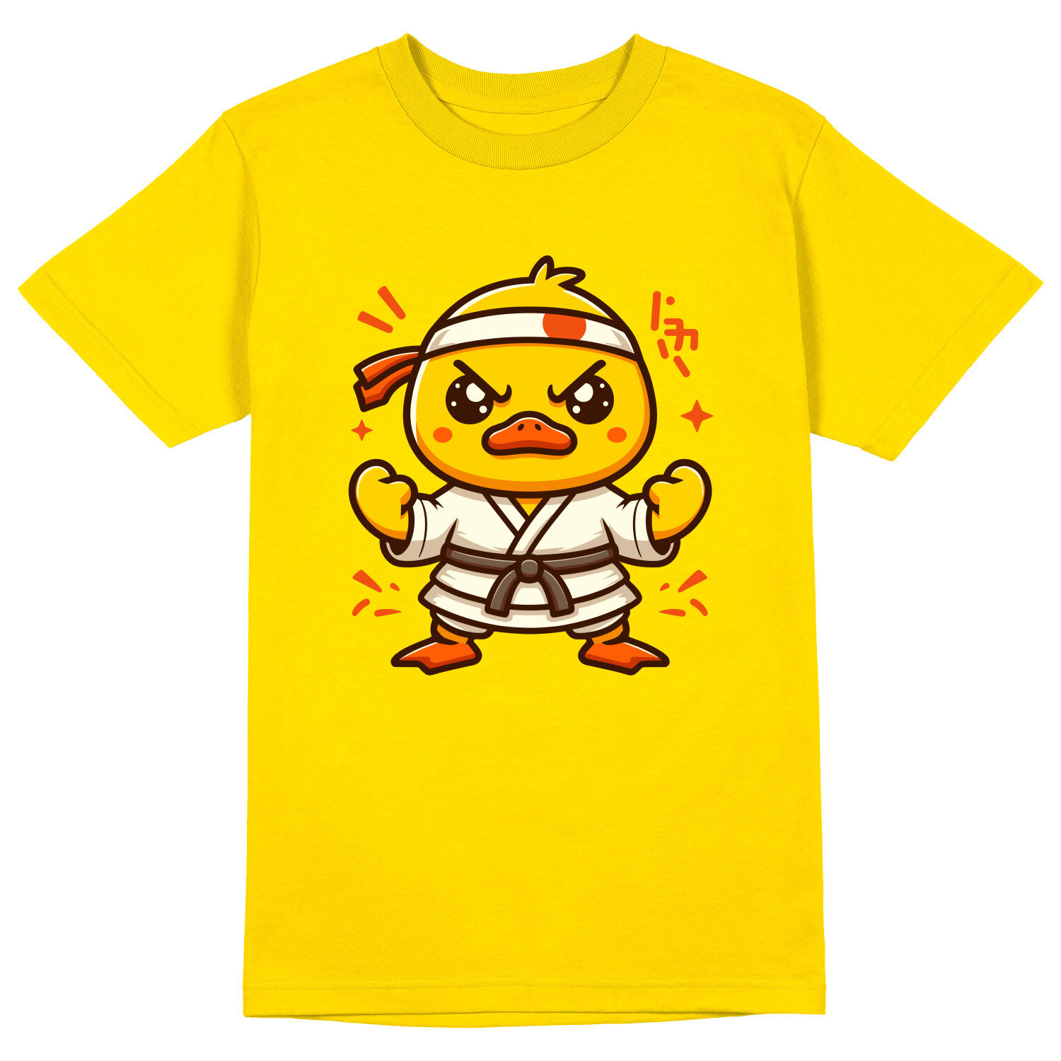 Мужская футболка «Желтая утка в кимоно для карате, самбо, дзюдо.» (XL, желтый) информация: