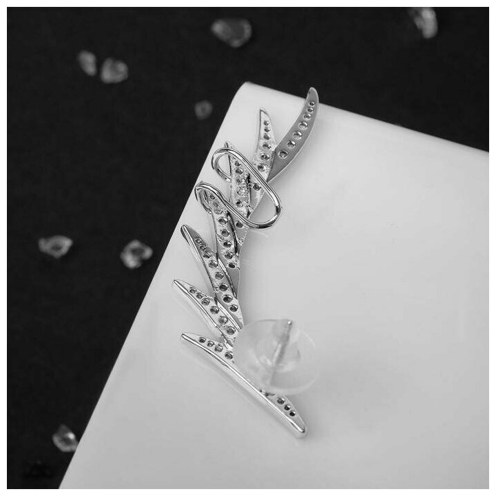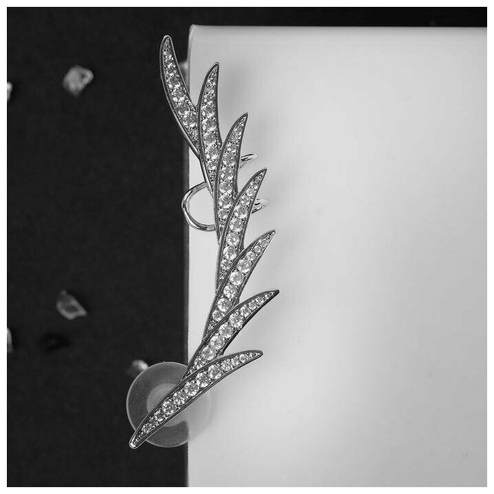 10 цен на Серьга Каффа перо стразы, цвет белый в серебре