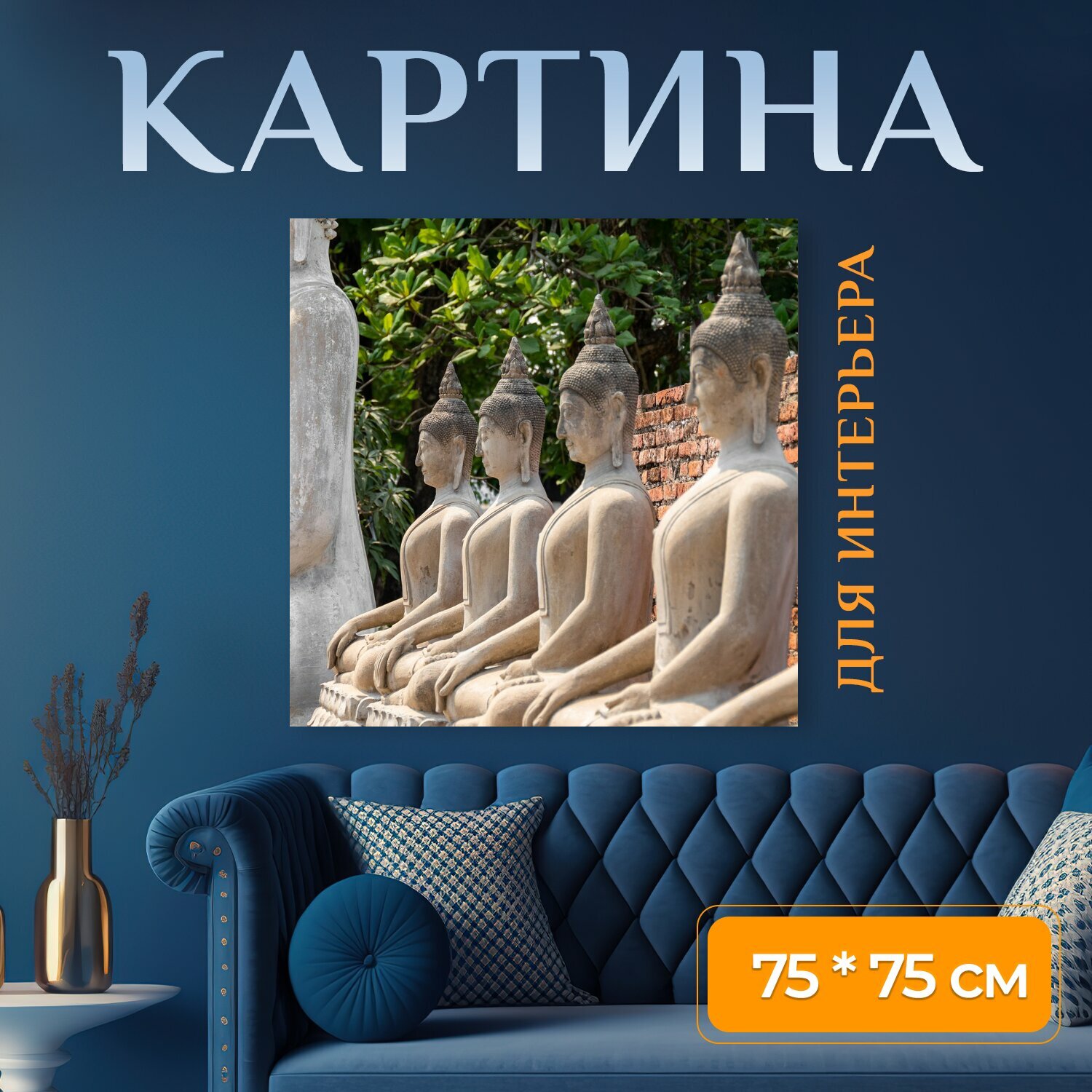 10 цен на Картина на холсте "Будда, статуя, медитация" на подрамнике 75х75 см. для интерьера