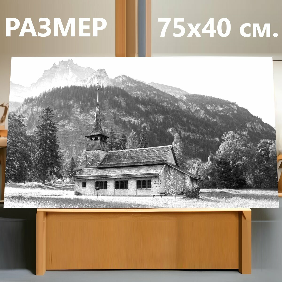Картина на холсте "Церковь, горы, часовня" на подрамнике 75х40 см. для интерьера информация: