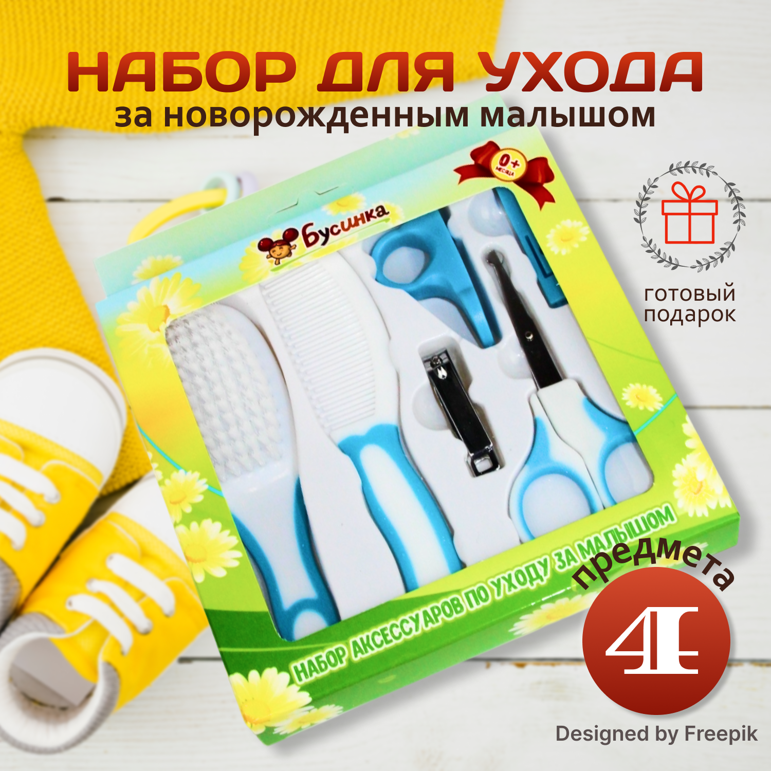 10 цен на Набор аксессуаров / подарочный набор Бусинка для новорожденных (детская расческа, щетка, кусачки, ножницы), для мальчика