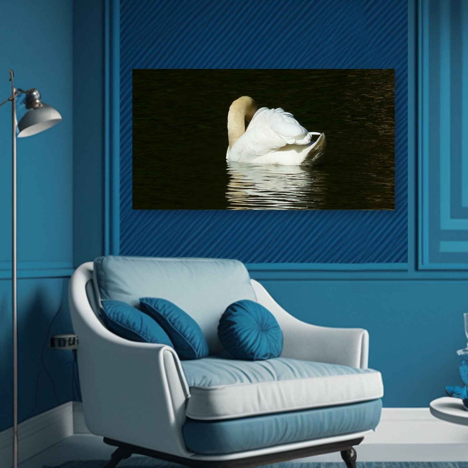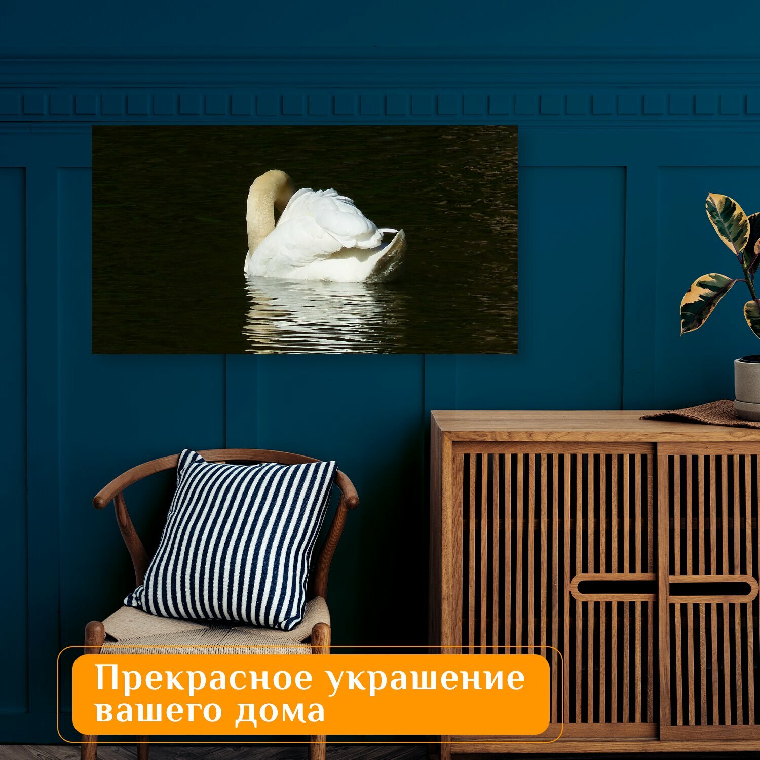 10 цен на Картина на холсте "Водное пространство, озеро, лебедь" на подрамнике 75х40 см. для интерьера