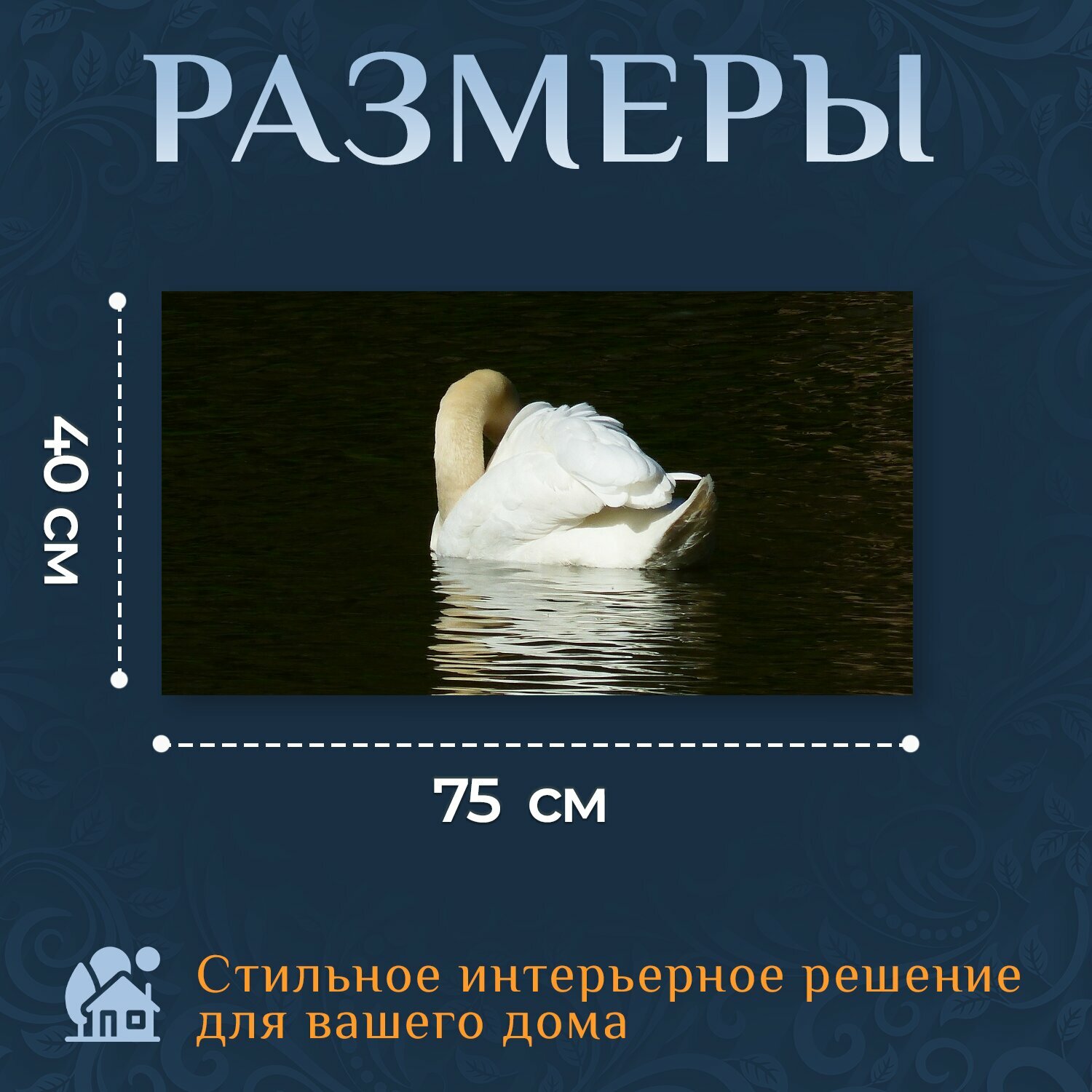 Картина на холсте "Водное пространство, озеро, лебедь" на подрамнике 75х40 см. для интерьера информация: