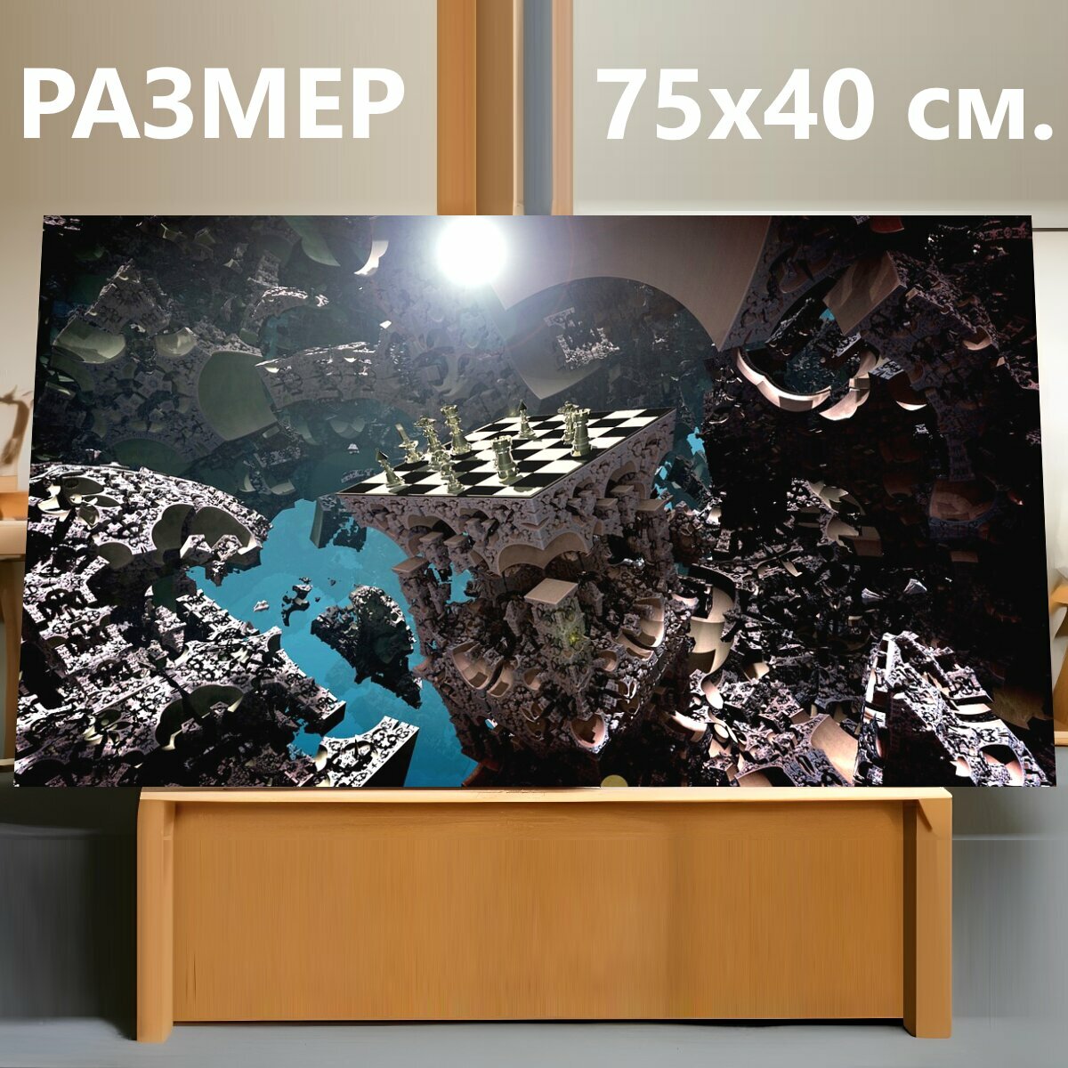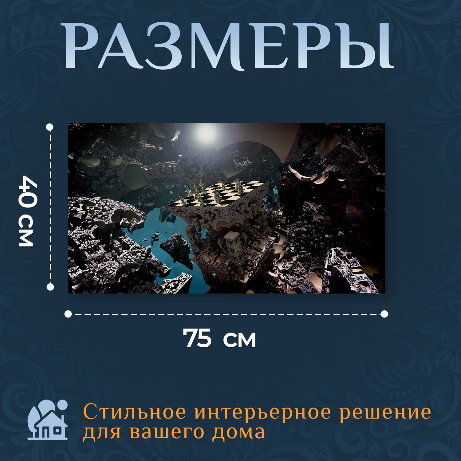 10 цен на Картина на холсте "Фрактальная среда, шахматы, игра в шахматы" на подрамнике 75х40 см. для интерьера
