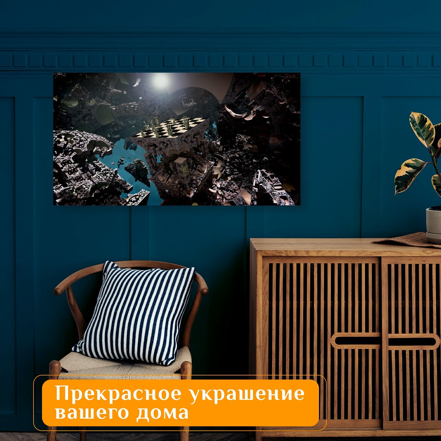 Отзывы на Картина на холсте "Фрактальная среда, шахматы, игра в шахматы" на подрамнике 75х40 см. для интерьера