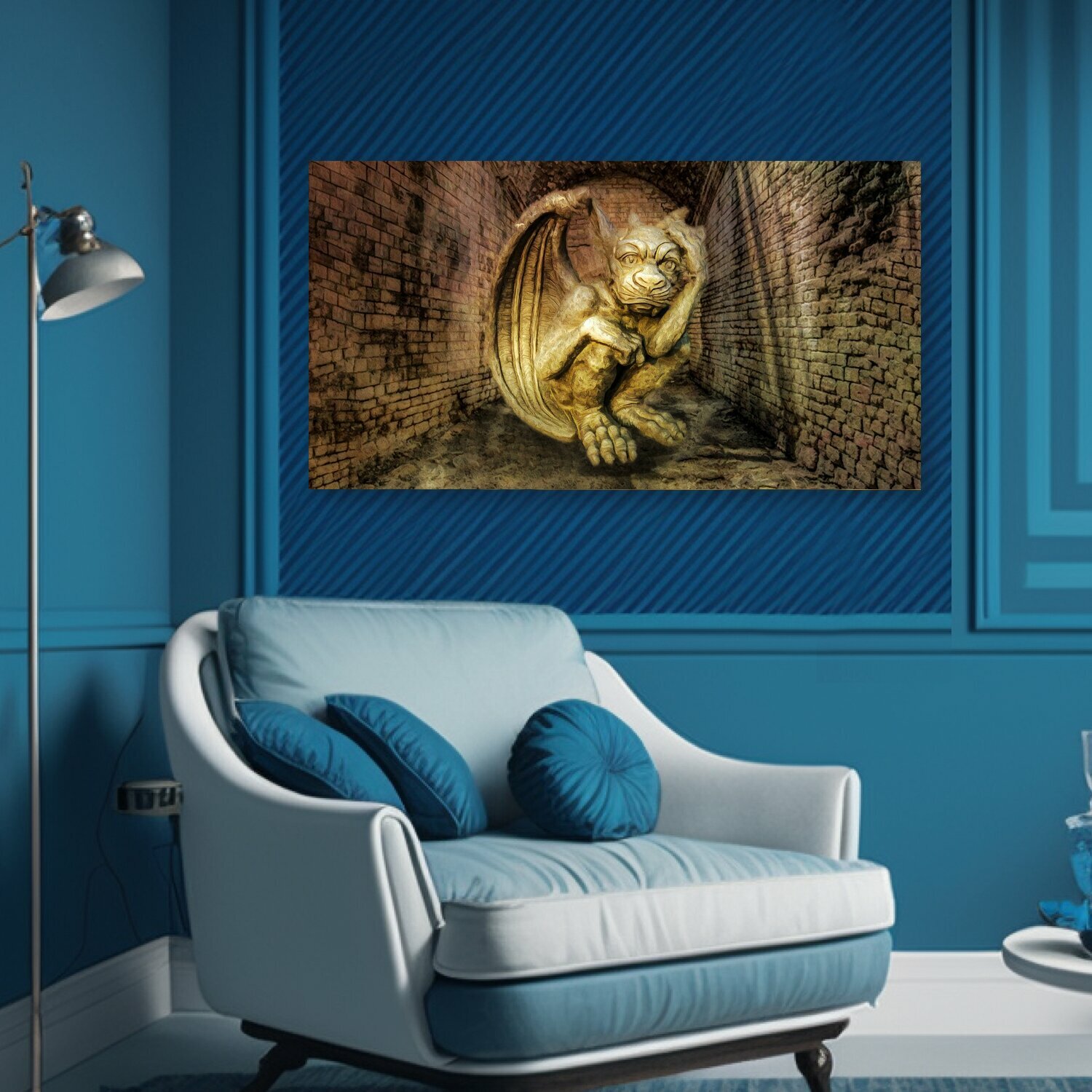10 цен на Картина на холсте "Статуя, горгулья, туннель" на подрамнике 75х40 см. для интерьера