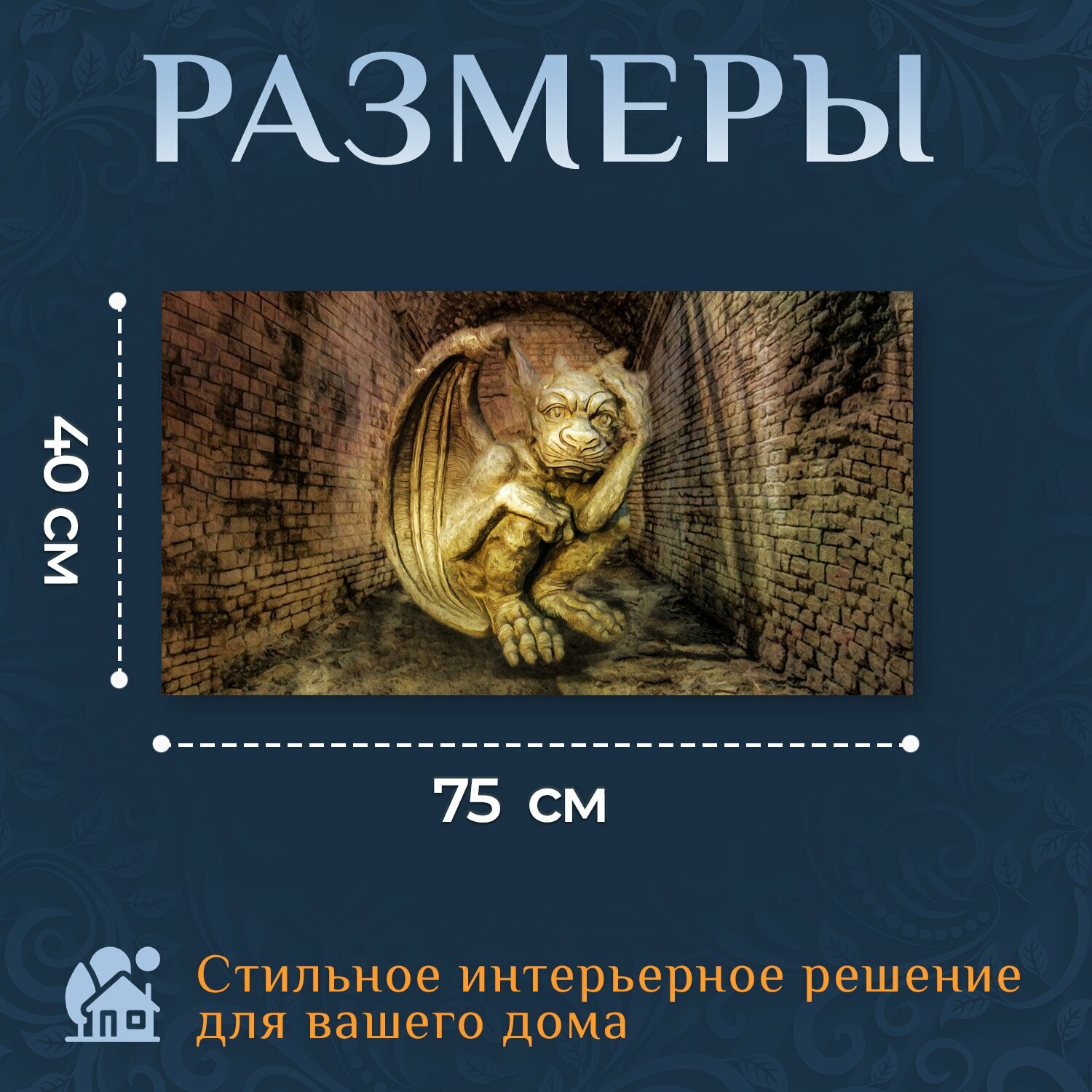 Картина на холсте "Статуя, горгулья, туннель" на подрамнике 75х40 см. для интерьера информация: