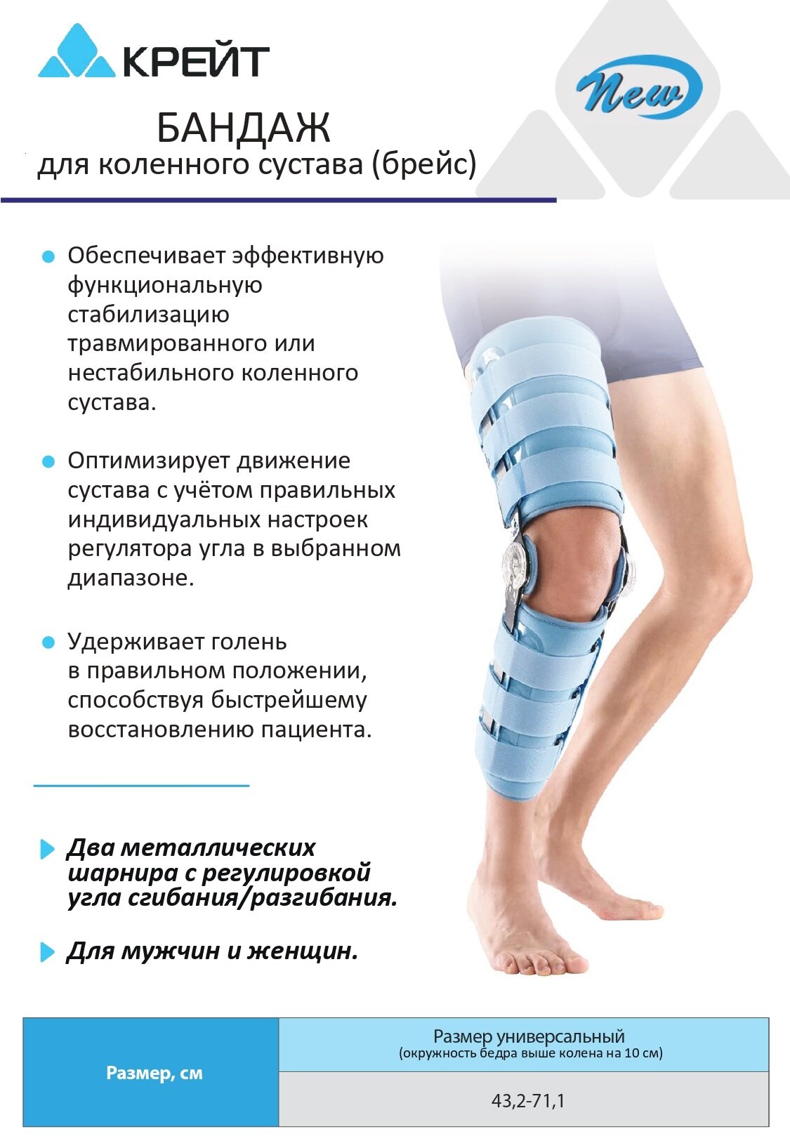 Ортез на коленный сустав , Брейс, с регулятором угла сгибания и разгибания информация: