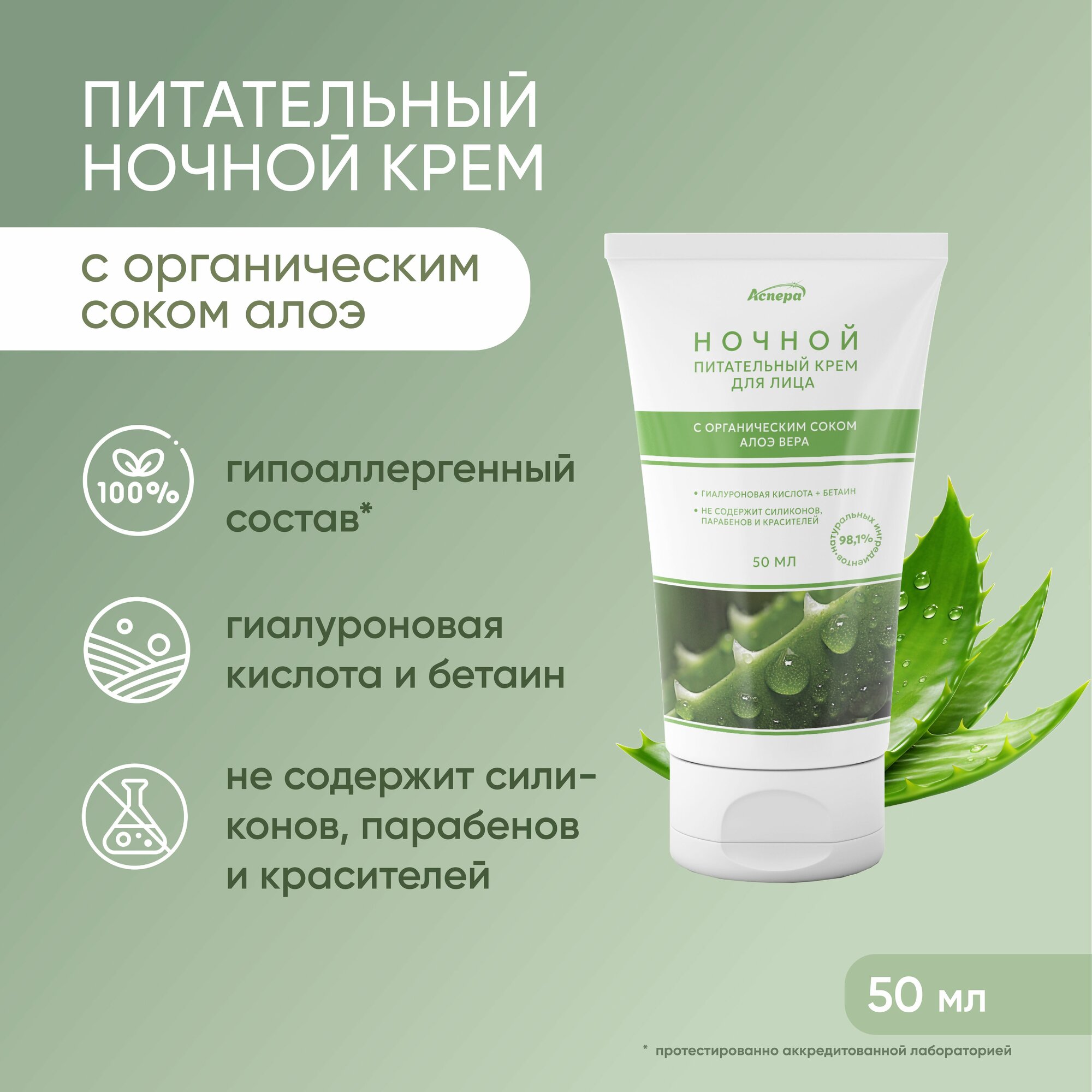 Ночной питательный крем для лица с органическим соком алоэ, 50 мл информация: