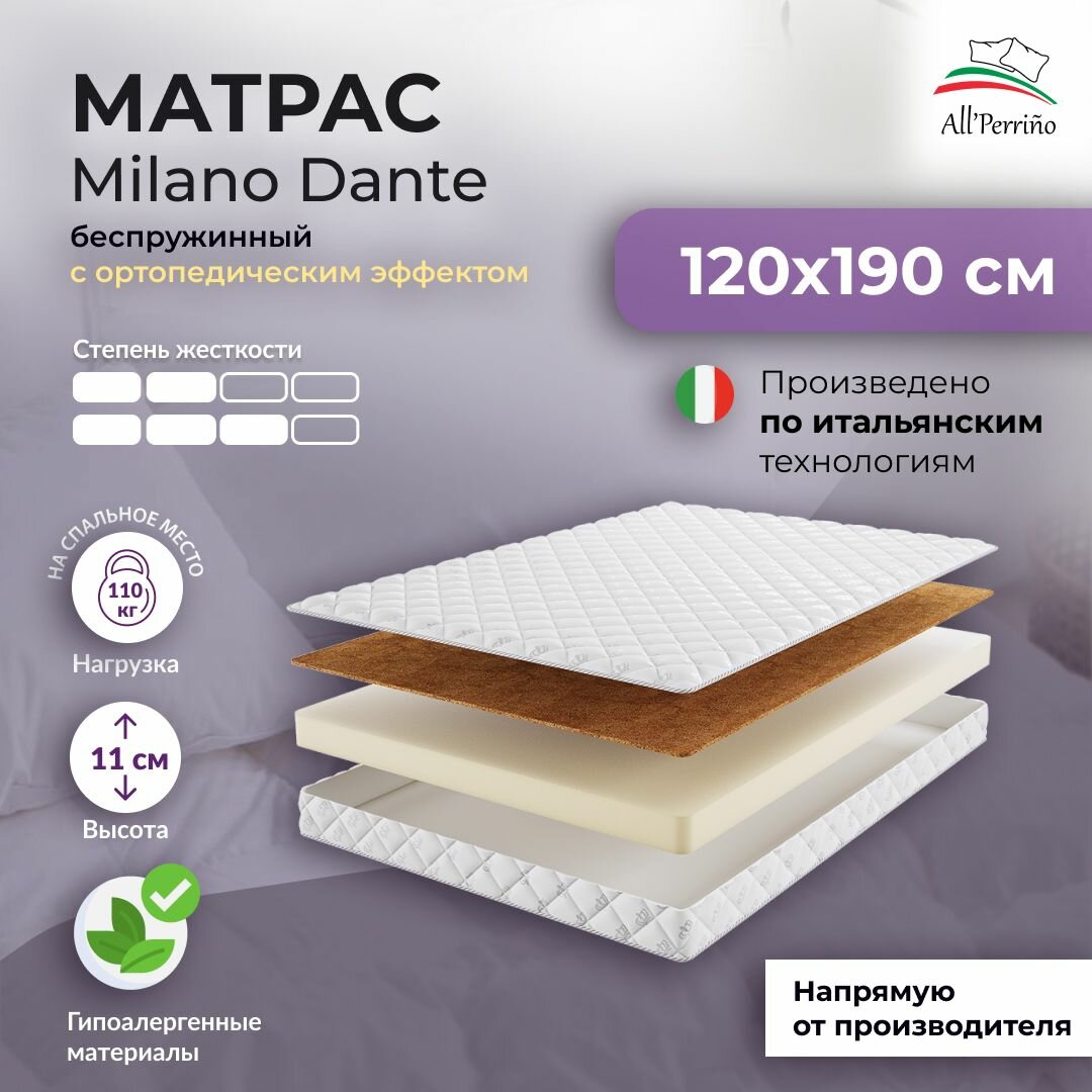 Матрас All'Perrino Milano Dante беспружинный 10 120х190 информация: