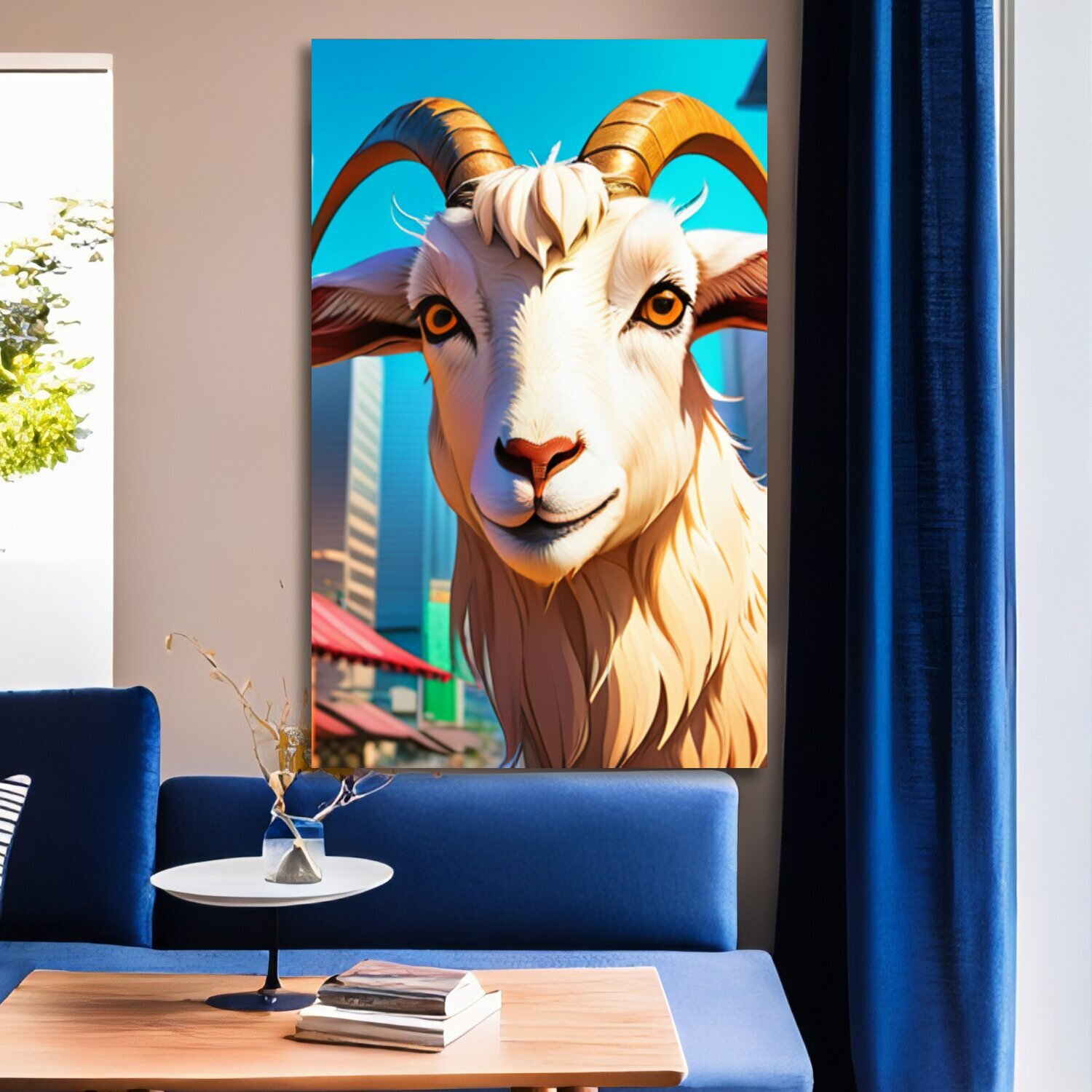 Картина на холсте В детскую комнату "Животные, звери, коза в городе" на подрамнике 75х120 см. для интерьера информация: