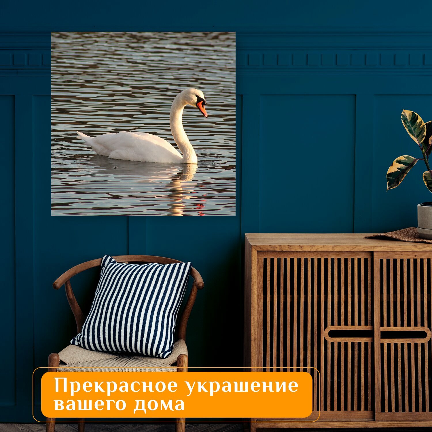10 цен на Картина на холсте "Лебедь, озеро, река" на подрамнике 75х75 см. для интерьера