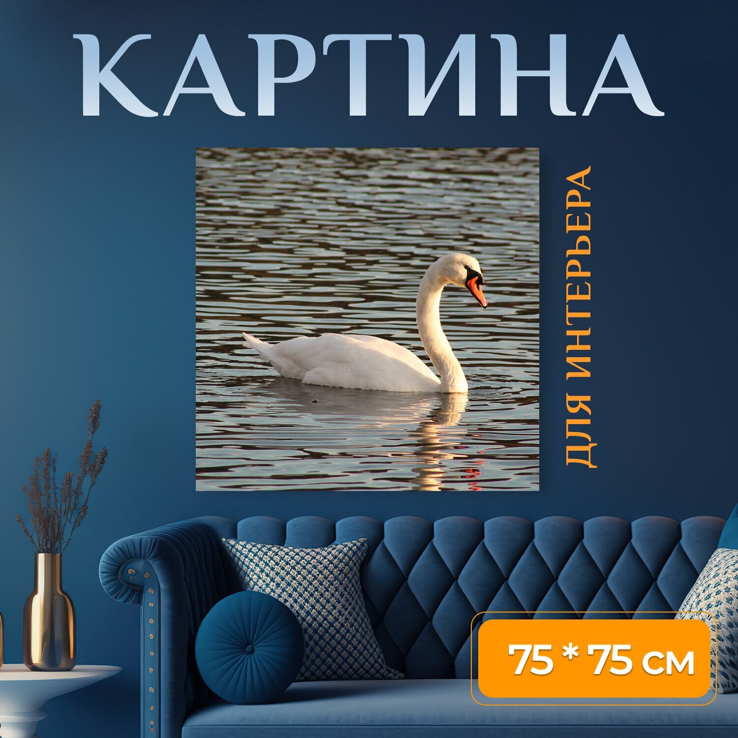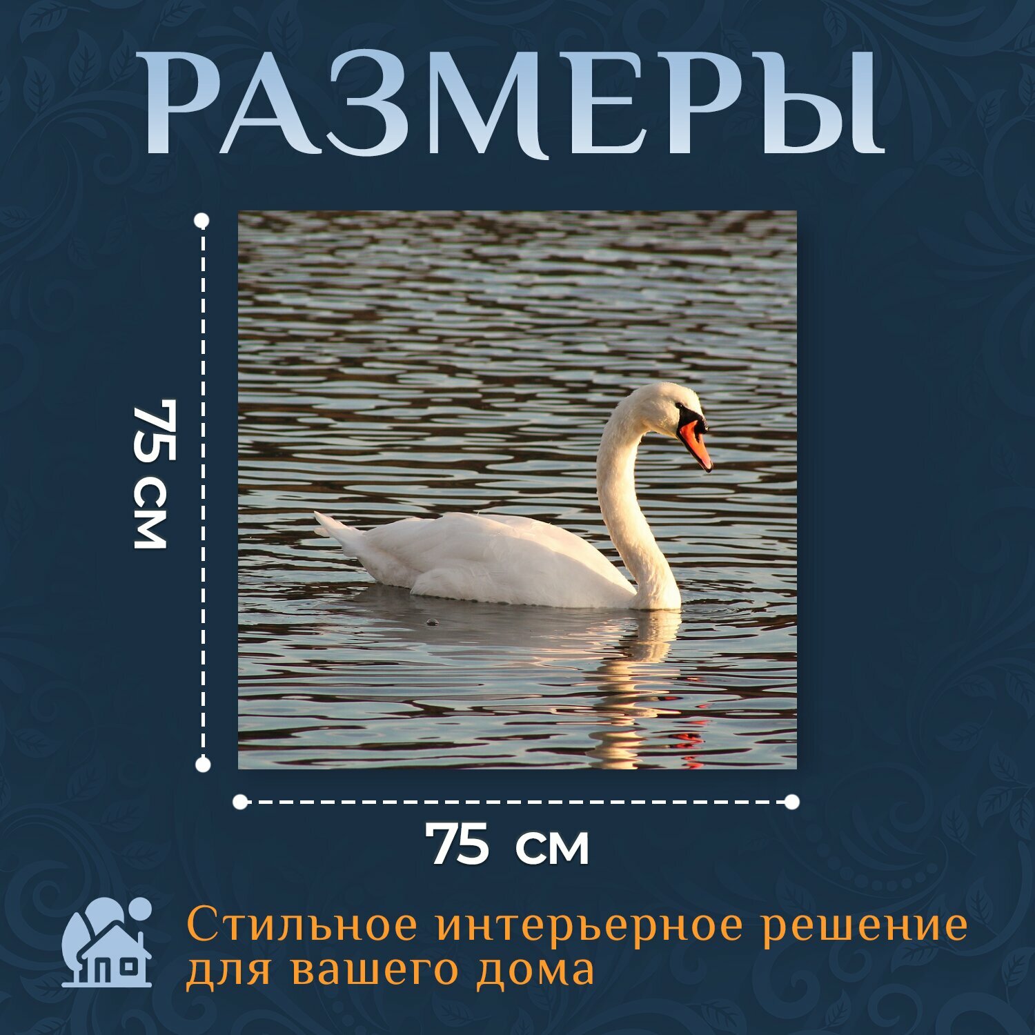 Картина на холсте "Лебедь, озеро, река" на подрамнике 75х75 см. для интерьера информация: