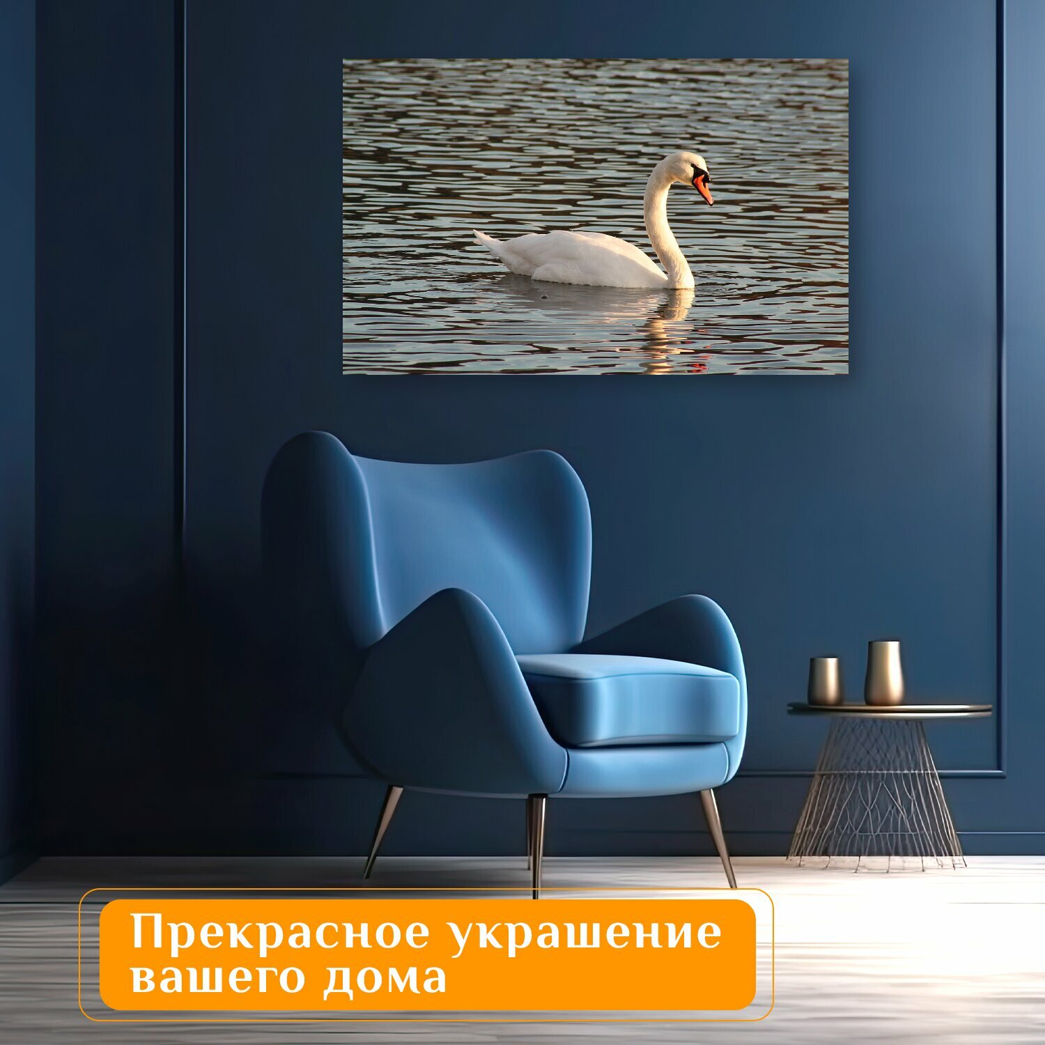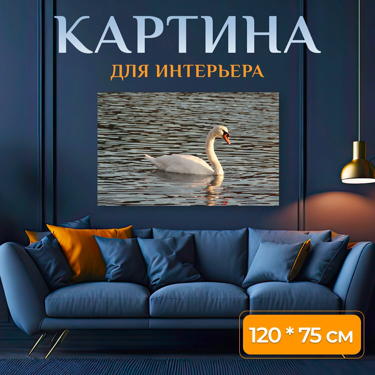 Картина на холсте "Лебедь, озеро, река" на подрамнике 120х75 см. для интерьера информация: