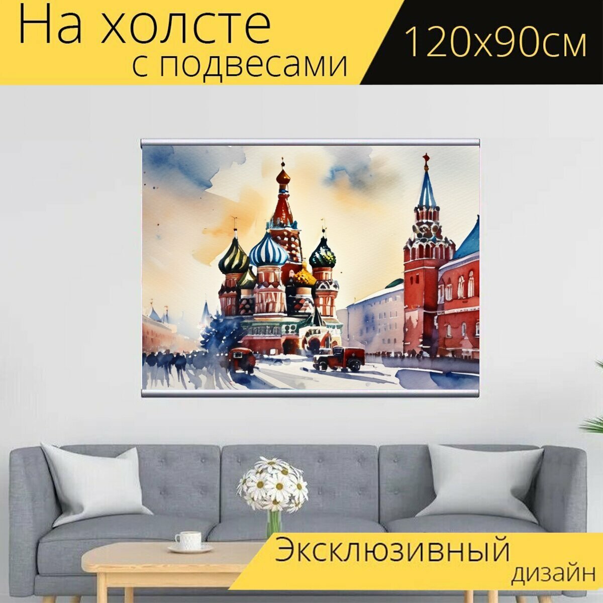 10 цен на Картина на холсте "Красная площадь алексеев, в стиле акварель" с подвесами 120х90 см. для интерьера на стену
