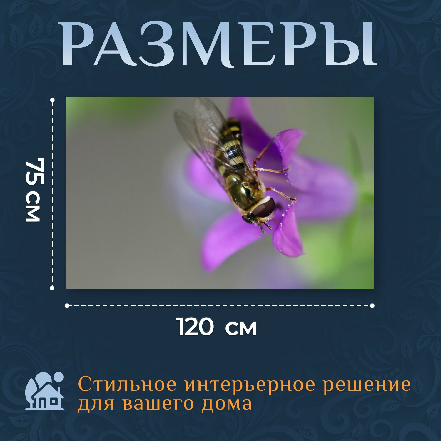 10 цен на Картина на холсте "Летать в воздухе, насекомое, колокольчик" на подрамнике 120х75 см. для интерьера