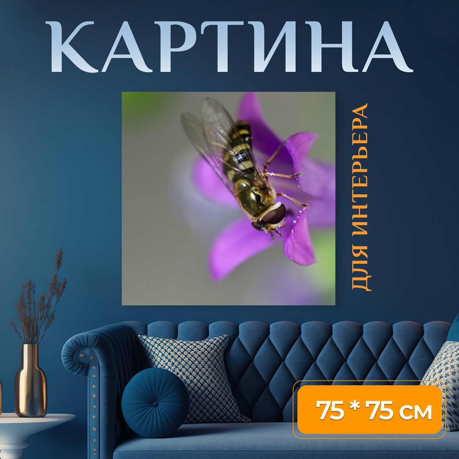 10 цен на Картина на холсте "Летать в воздухе, насекомое, колокольчик" на подрамнике 75х75 см. для интерьера