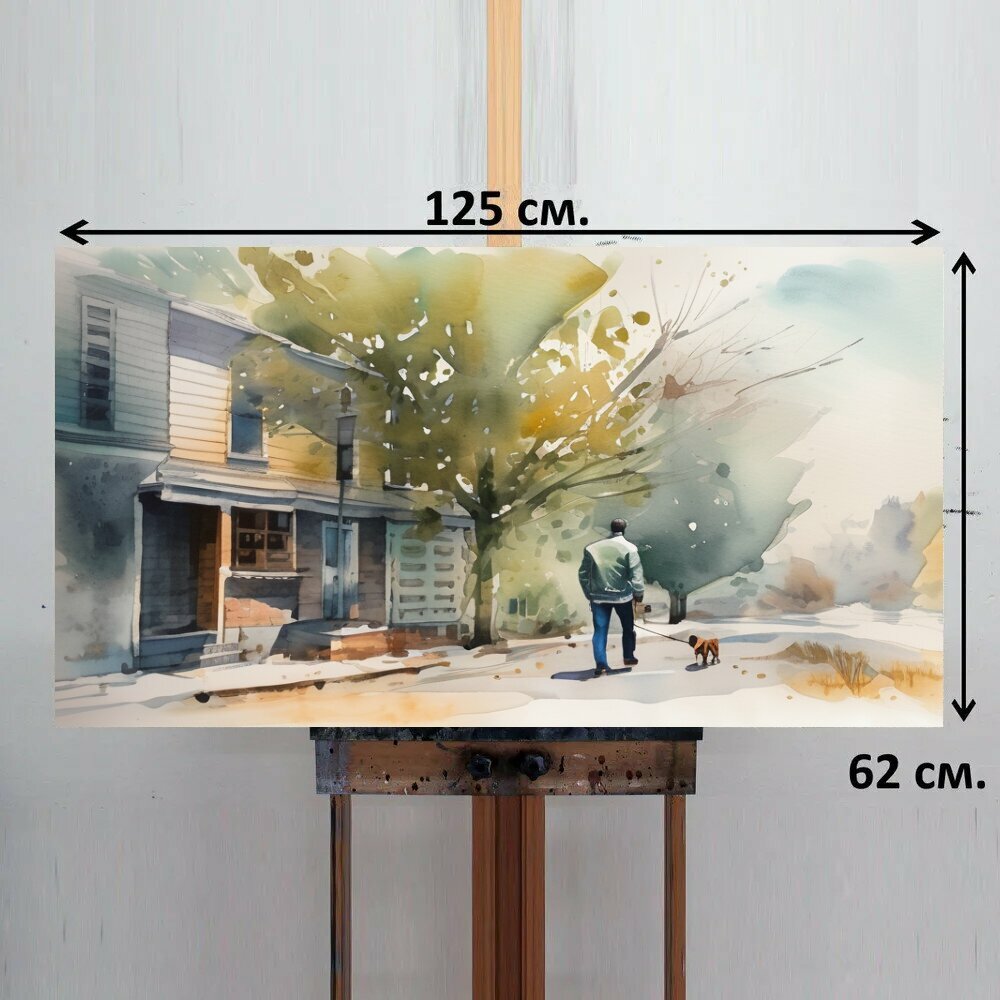 10 цен на Картина на ОСП "Мужик и собака, в стиле акварель" 125x62 см. для интерьера на стену