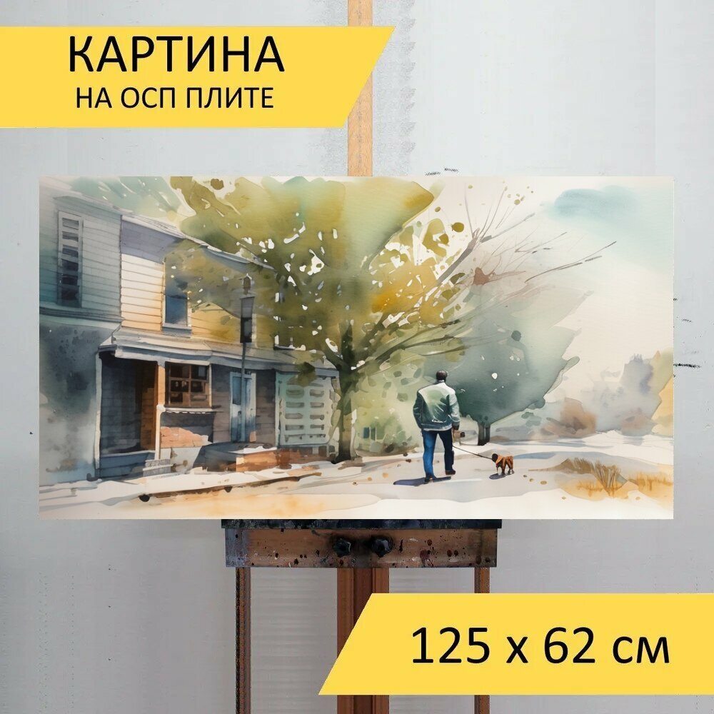 Картина на ОСП "Мужик и собака, в стиле акварель" 125x62 см. для интерьера на стену информация: