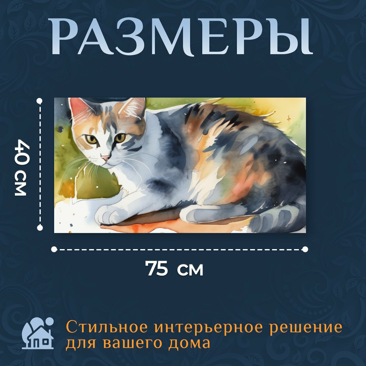 10 цен на Картина на холсте "Кот и птички, в стиле акварель" на подрамнике 75х40 см. для интерьера
