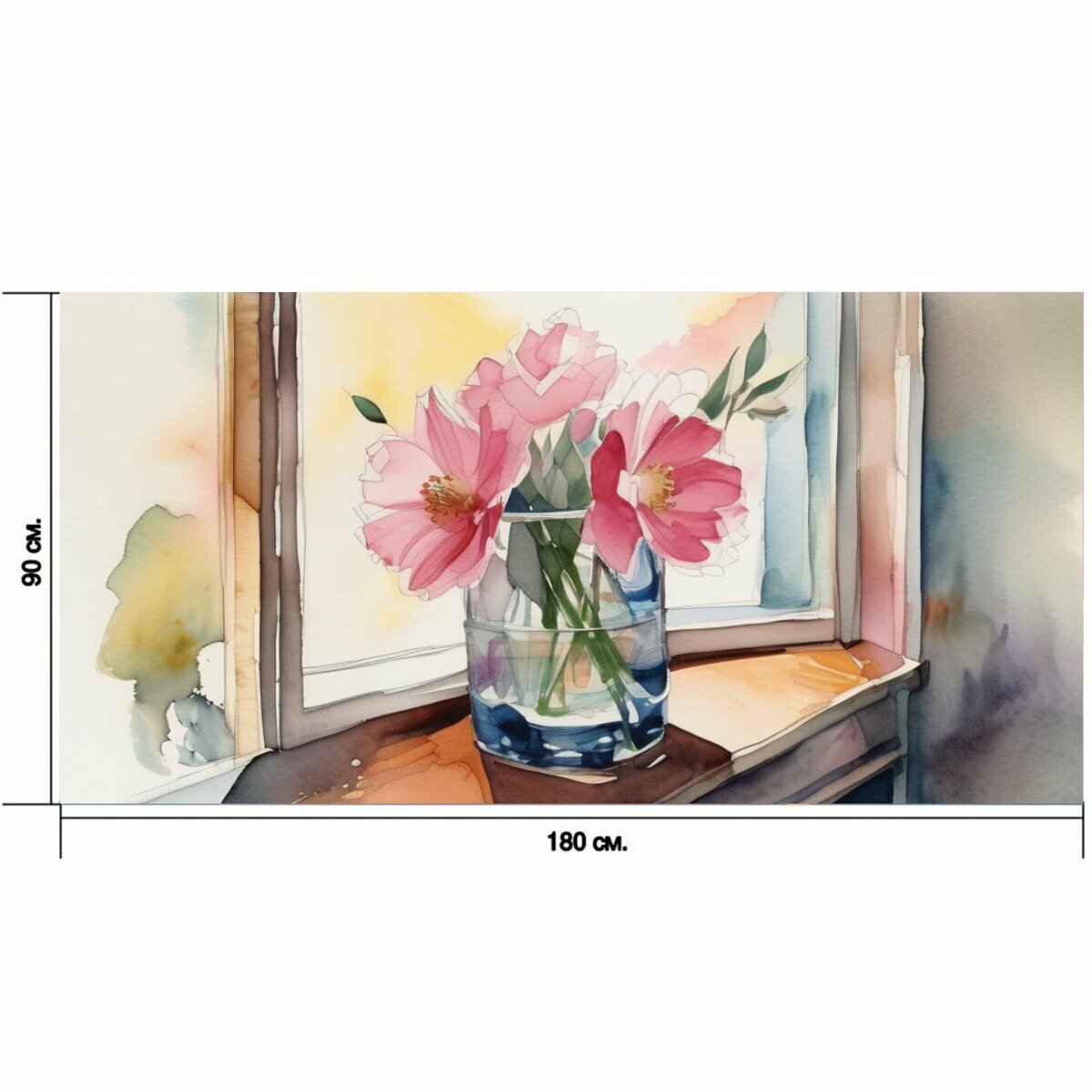 Большой постер "Цветок в интерьере, в стиле акварель" 180 x 90 см. для интерьера на стену информация:
