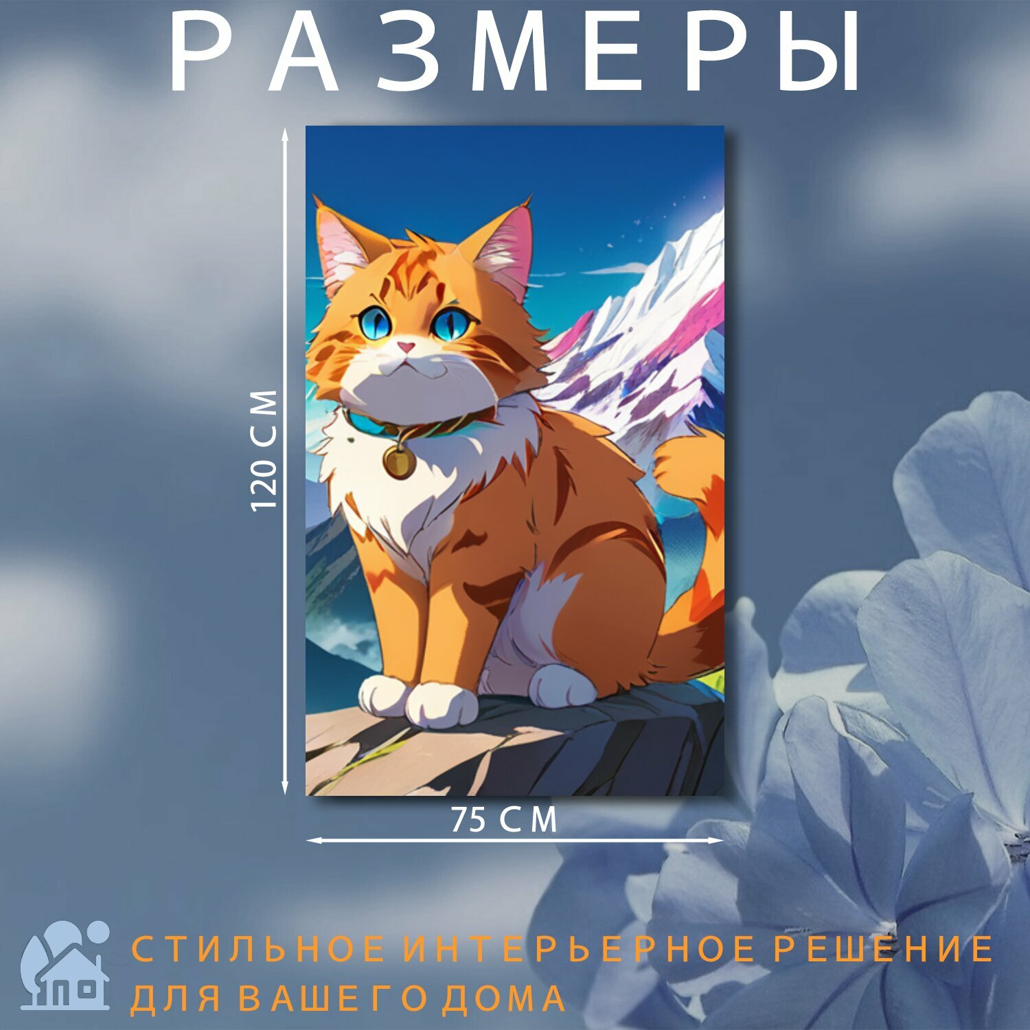 Картина на холсте В детскую комнату "Животные, звери, кот в горах" на подрамнике 75х120 см. для интерьера информация: