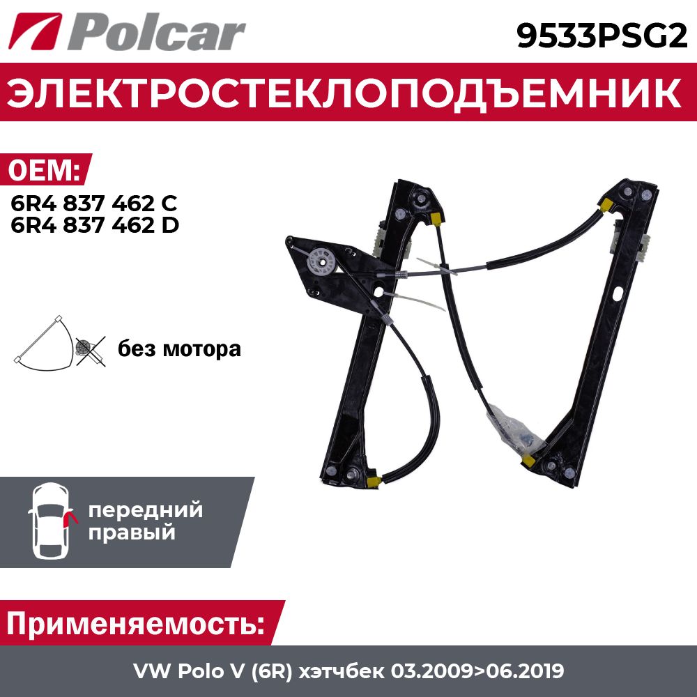 Стеклоподъемник Volkswagen Polo Mk5 (6R) передний правый электрический без мотора - Polcar информация:
