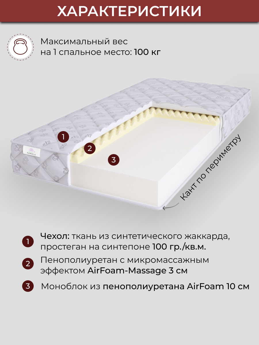 Матрас KAMALA ROLL FOAM 10 Massage 80х190 информация: