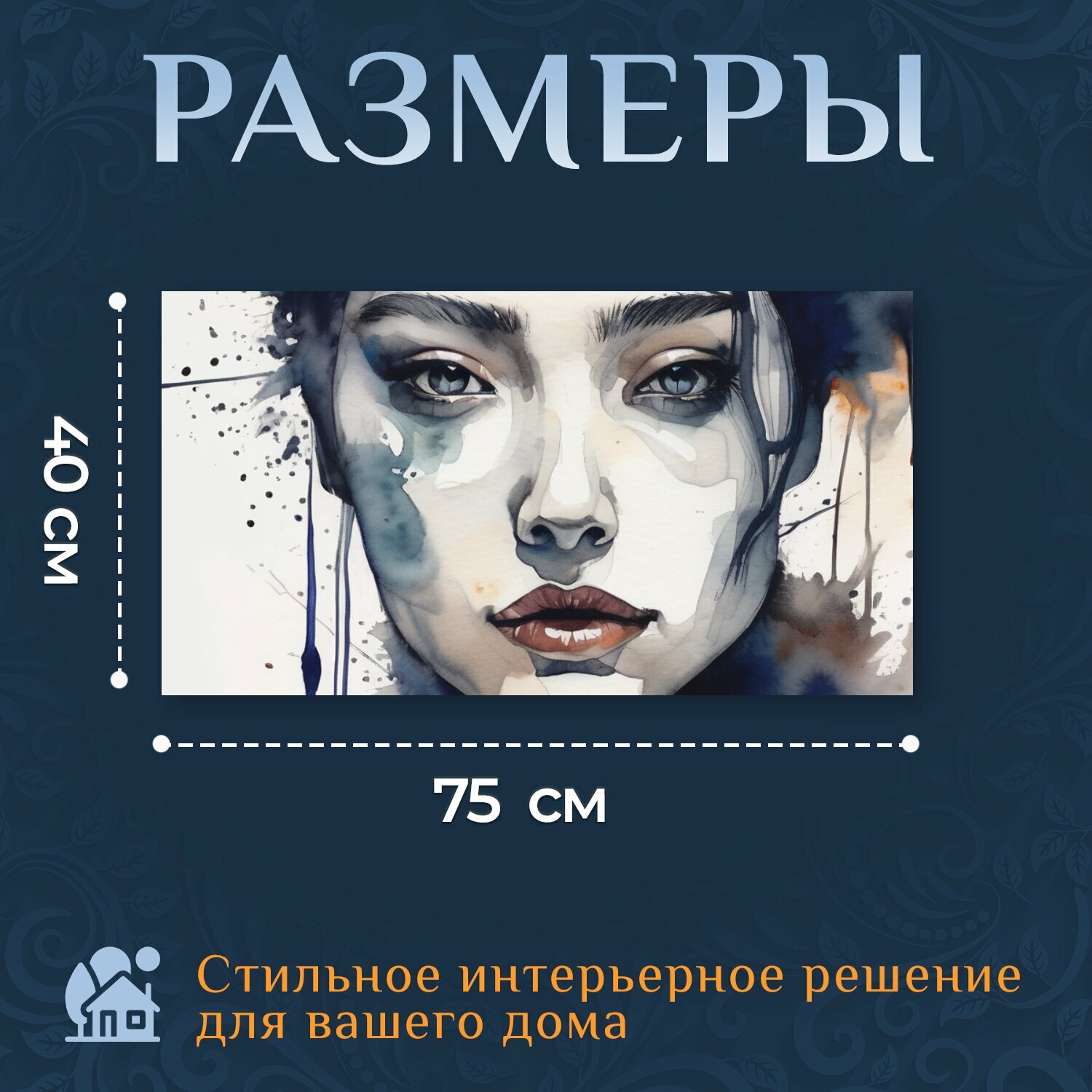 Картина на холсте "Женщина которая скучает, в стиле акварель" на подрамнике 75х40 см. для интерьера информация: