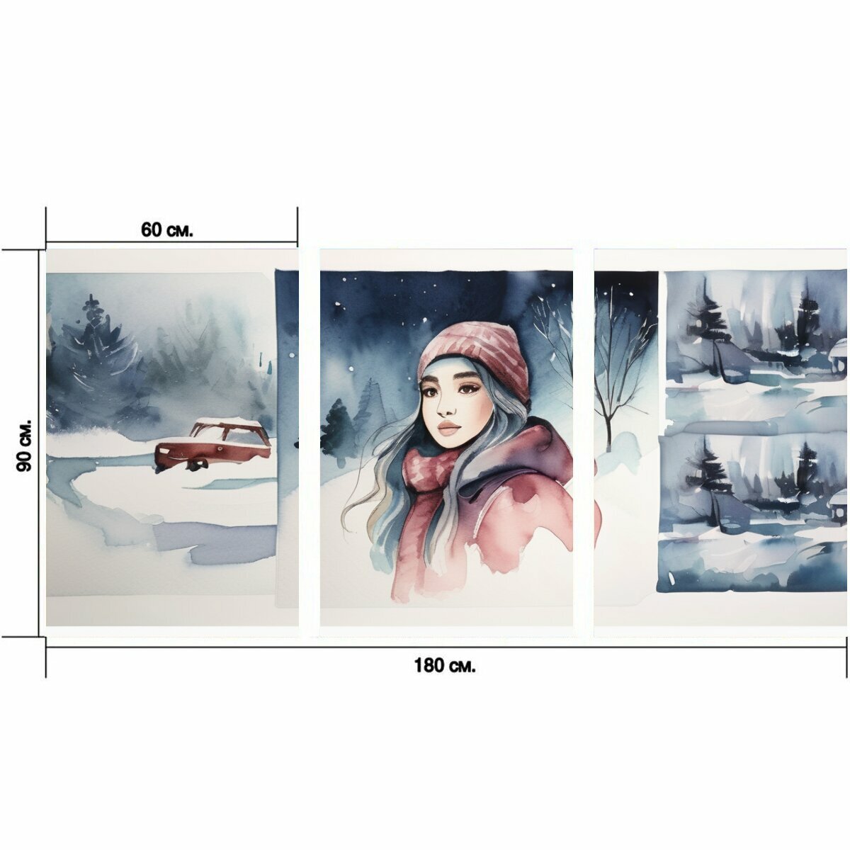 Модульный постер "Большая недорого, в стиле акварель" 180 x 90 см. для интерьера на стену информация: