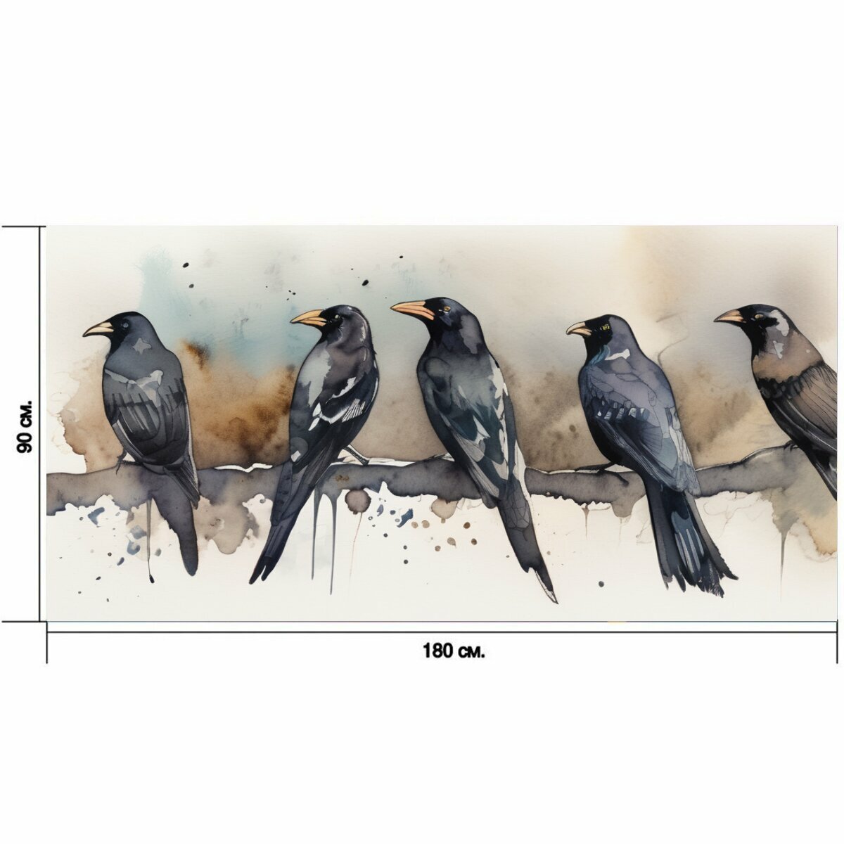 10 цен на Большой постер "Черная ворона, в стиле акварель" 180 x 90 см. для интерьера на стену