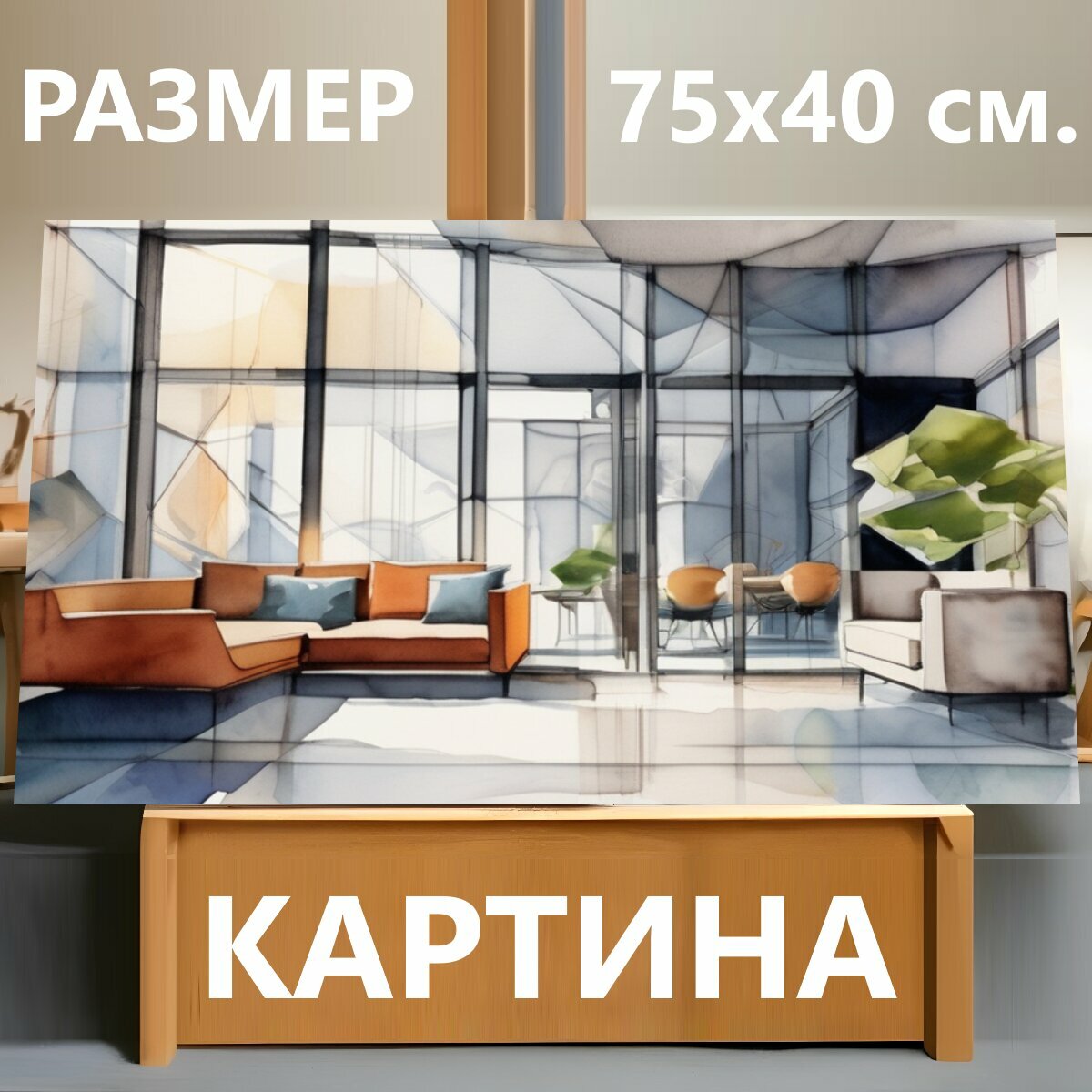 Картина на холсте "Интерьерная геометрия, в стиле акварель" на подрамнике 75х40 см. для интерьера информация: