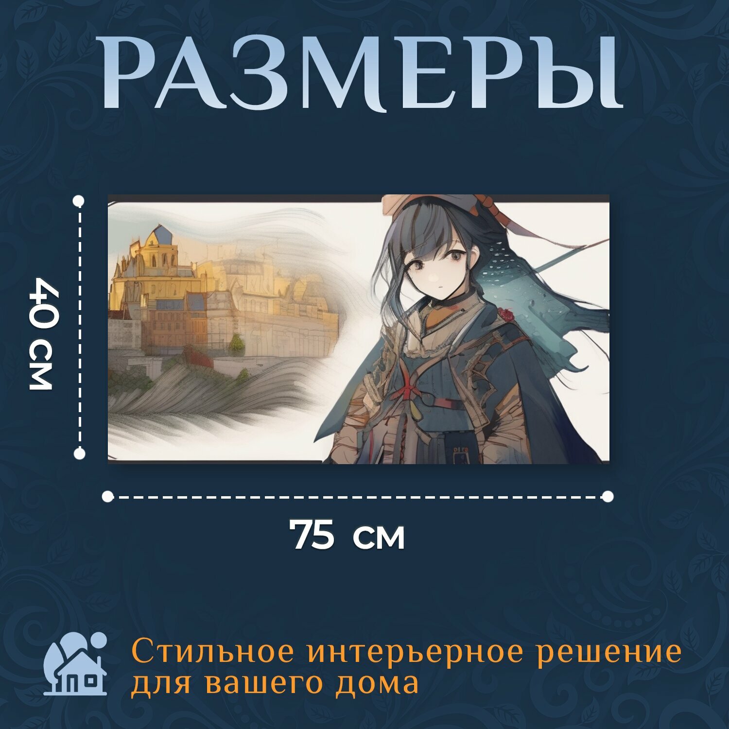 10 цен на Картина на холсте "Девушка с соболем, в стиле акварель" на подрамнике 75х40 см. для интерьера